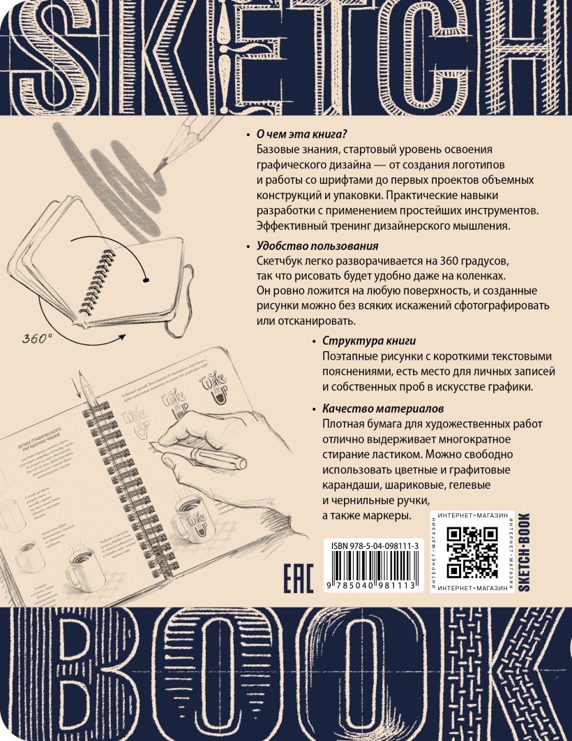Sketchbook with lessons inside. Designer's sketchbook. Graphic workshop.