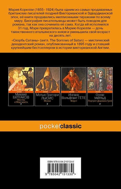 "The Sorrows of Satan" is a decadent mystical novel by the English writer Marie Corelli, published in 1895 and becoming the biggest bestseller in the history of Victorian England.