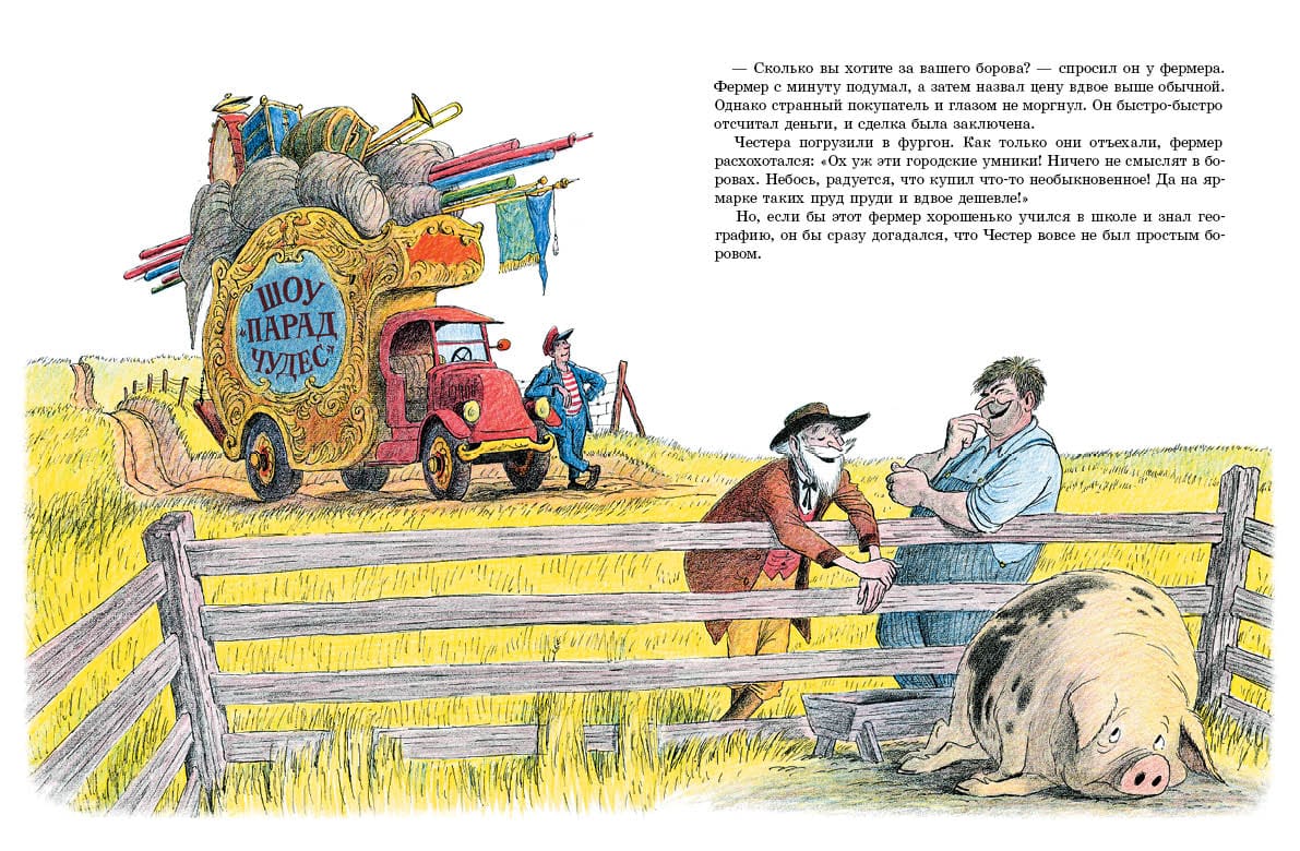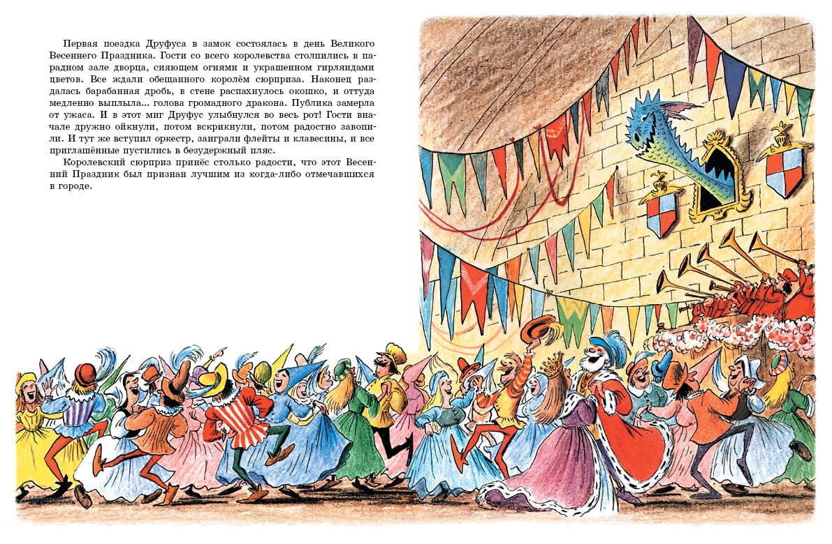 The book includes three fairy tale stories by the famous American animator and classic of children's literature Bill Pete: "The Dragon Drufus", "Chester the Pig", "Squirabka the Hermit". Bill Pete is one of those wise and subtle storytellers to whom the world owes good people, because with his stories he is able to cheerfully and without admonition to educate humanity. The main characters of his books are all kinds of animals: dogs, cats, horses, piglets, bears, lions, and sometimes the author's invented incredibly cute fantasy creatures. Bill Pete gives each character a vivid personality, expressive facial expressions and special expression, so that when you turn the book, the characters on the pages seem to come to life, as if in a real cartoon.