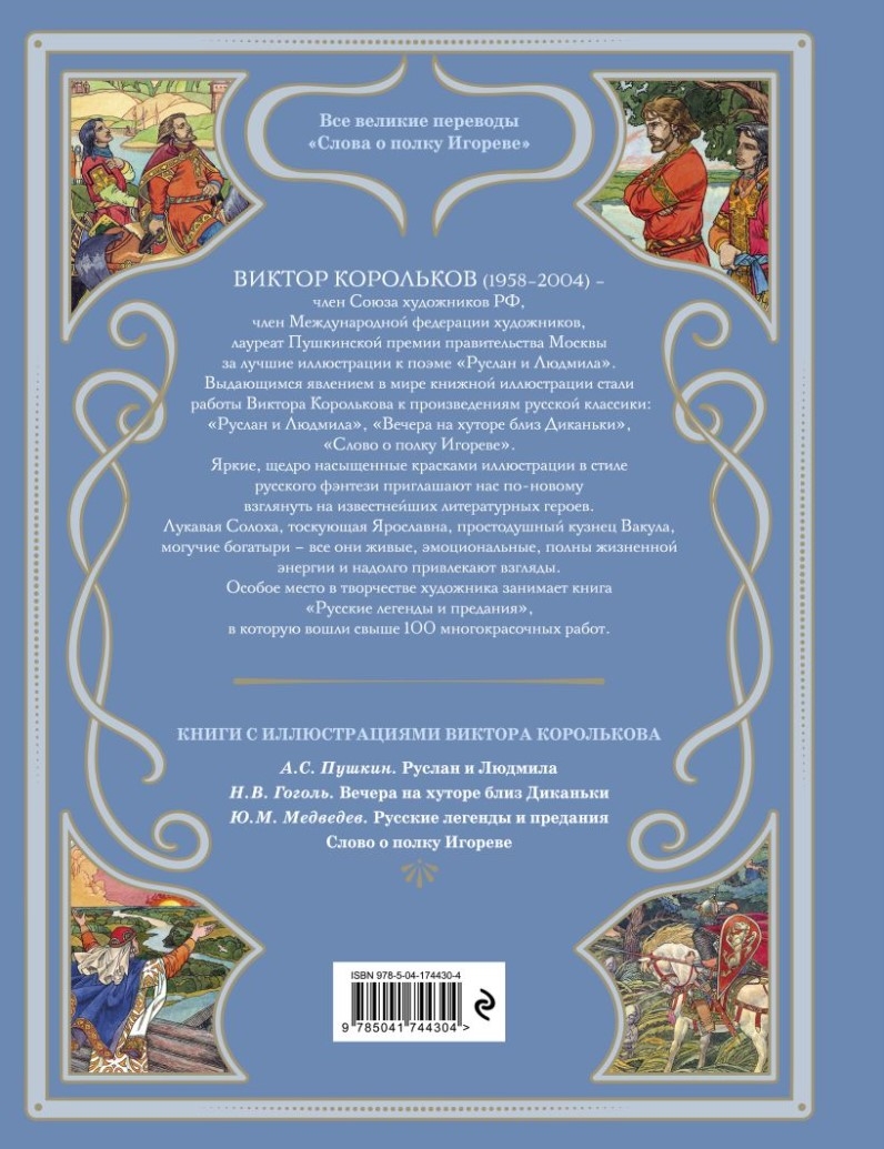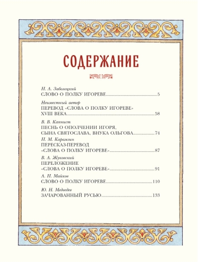 "The Tale of Igor's Campaign" has repeatedly inspired renowned writers. In the 19th century, translations and adaptations were presented to the reading public by Vasily Kapnist, Nikolai Karamzin, Vasily Zhukovsky, and Apollon Maikov. One of the finest poetic translations of the 20th century was by Nikolai Zabolotsky. All of these, as well as one of the first anonymous translations from the 18th century, are presented in this book.