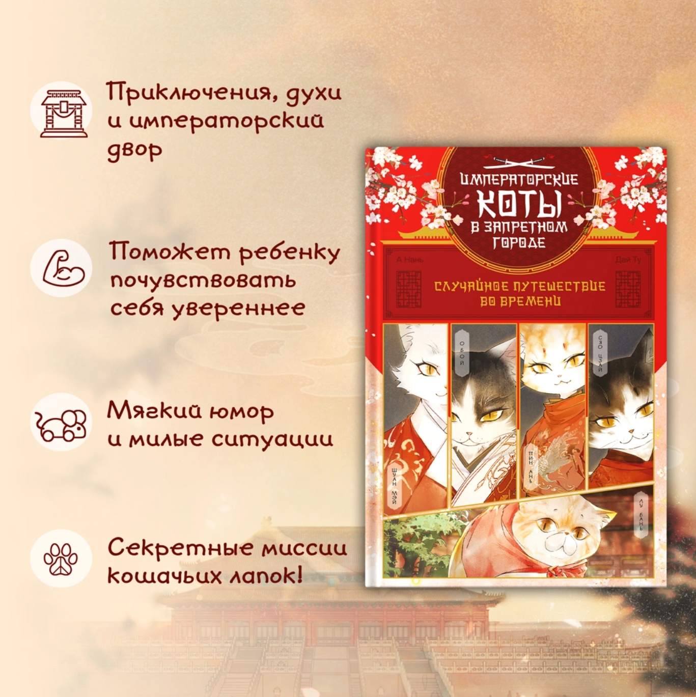 The Forbidden City, the seat of Chinese dynasties, is the largest palace in the world. A team of super-professionals—the imperial cats—stands guard over the palace. Only they are entrusted with the most secret missions, and only they always carry them out brilliantly. And now—a new mission! An ancient artifact—a porcelain bowl—has gone missing! The Imperial Cat Squad must journey into the mysterious spirit world… To be continued…