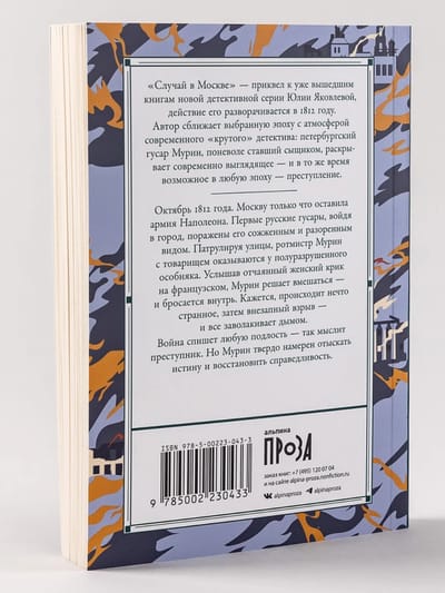 "An Incident in Moscow" is a prequel to the previously published books in Yulia Yakovleva's new detective series, set in 1812. The author evokes the era with the atmosphere of a modern hard-boiled detective novel: a St. Petersburg hussar, Murin, who reluctantly becomes a detective, solves a crime that seems contemporary—yet plausible in any era.