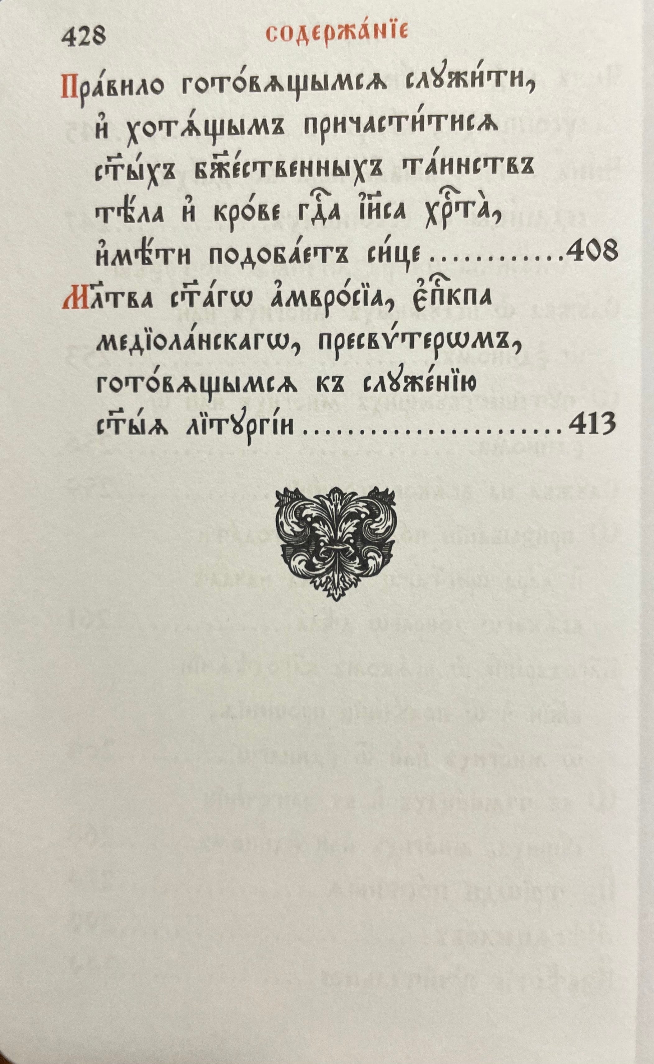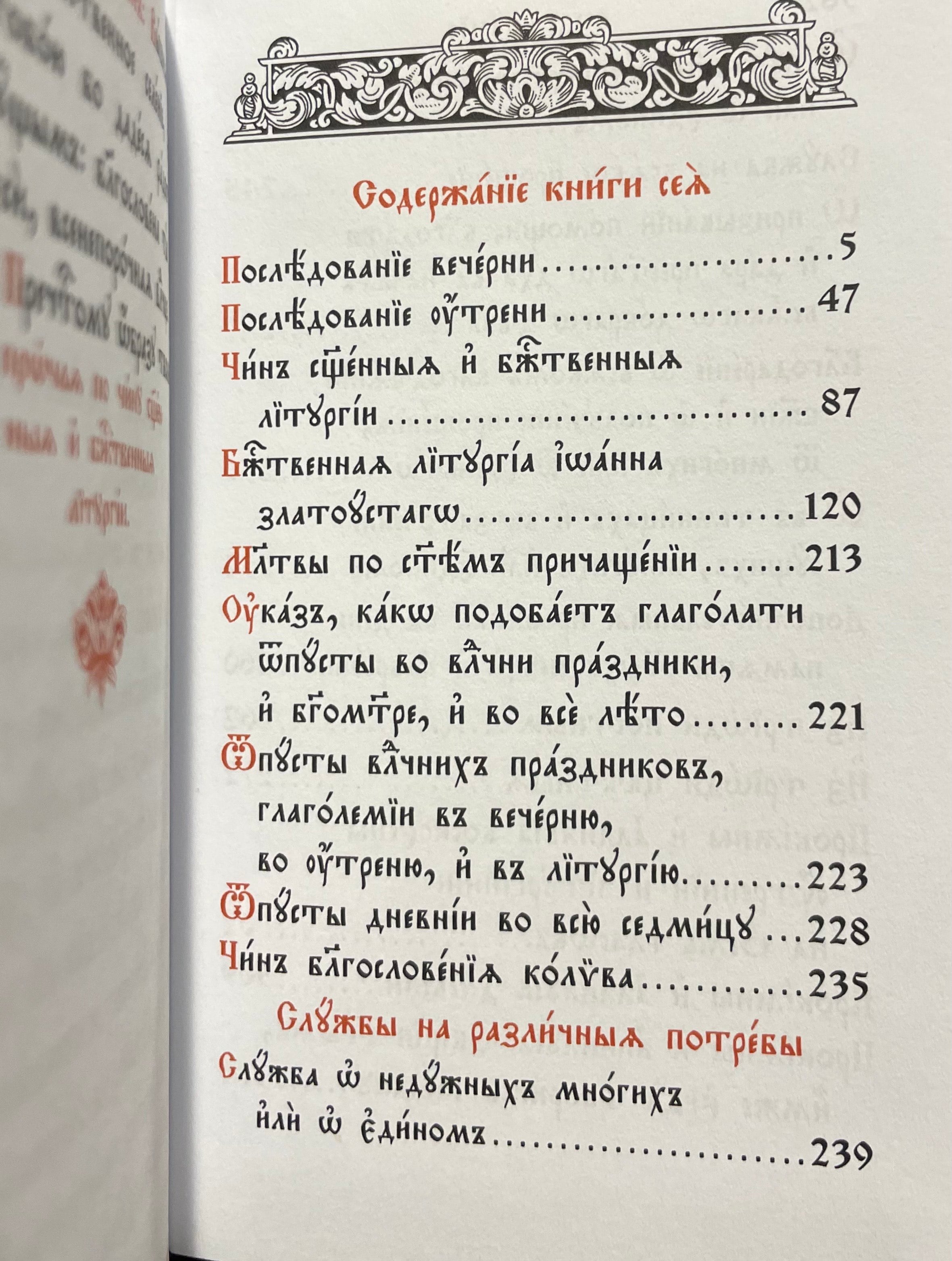 A pocket-sized service book bound in eco-leather with blind embossing and gold foil stamping. This traditional edition is printed in two colors using standard Church Slavonic font on offset paper and features rounded corners.