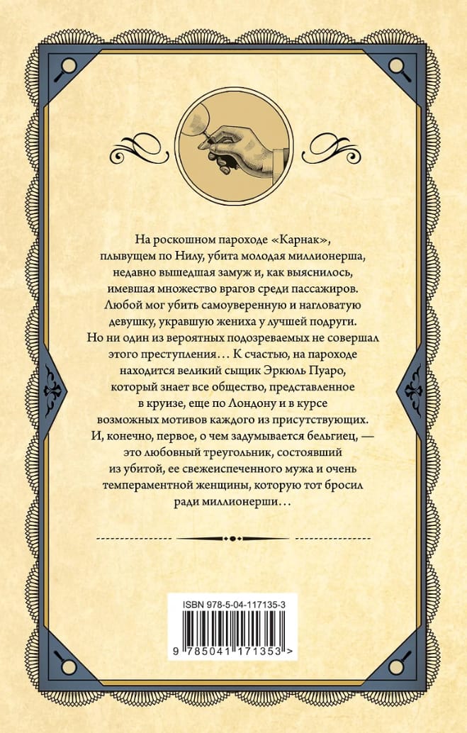 On the luxurious steamship "Karnak", sailing on the Nile, a young millionaire, recently married and, as it turned out, had many enemies among the passengers, is murdered. Anyone could have killed the cocky and arrogant girl who had stolen her best friend's fiancé. But none of the likely suspects did not commit this crime ... Fortunately, on the steamer is the great detective Hercule Poirot, who knows all the society represented in the cruise, back in London, and is aware of the possible motives of everyone present. And, of course, the first thing the Belgian thinks about is the "love triangle" consisting of the murdered woman, her freshly married husband and a very temperamental woman, whom he left for a millionaire ...