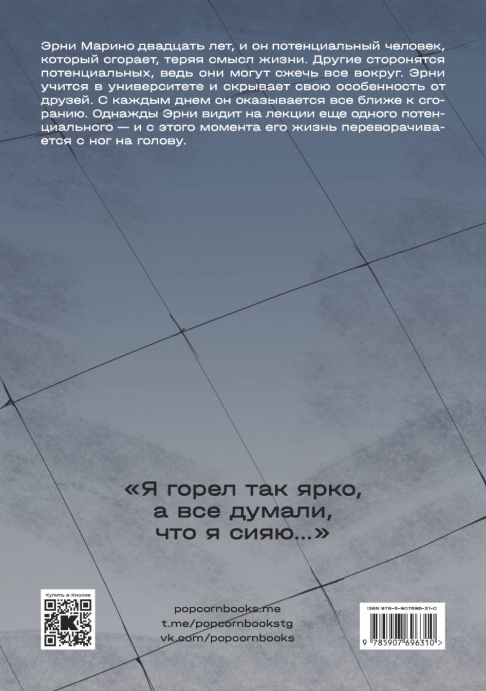 Ernie Marino is twenty years old and he is a potential, a person who burns out, losing the meaning of life. Others avoid potentials, because they can burn everything around them. Ernie studies at the university and hides his peculiarity from his friends. Every day he gets closer to burning out: first, he has attacks of suffocation, then his hands start to smolder, and, finally, the person burns out. One day, Ernie sees another potential at a lecture - and from that moment on, his life turns upside down.