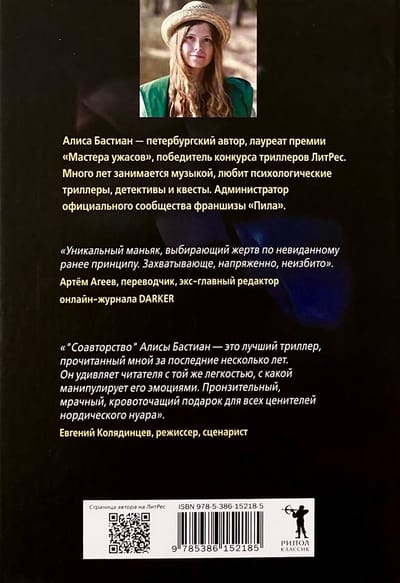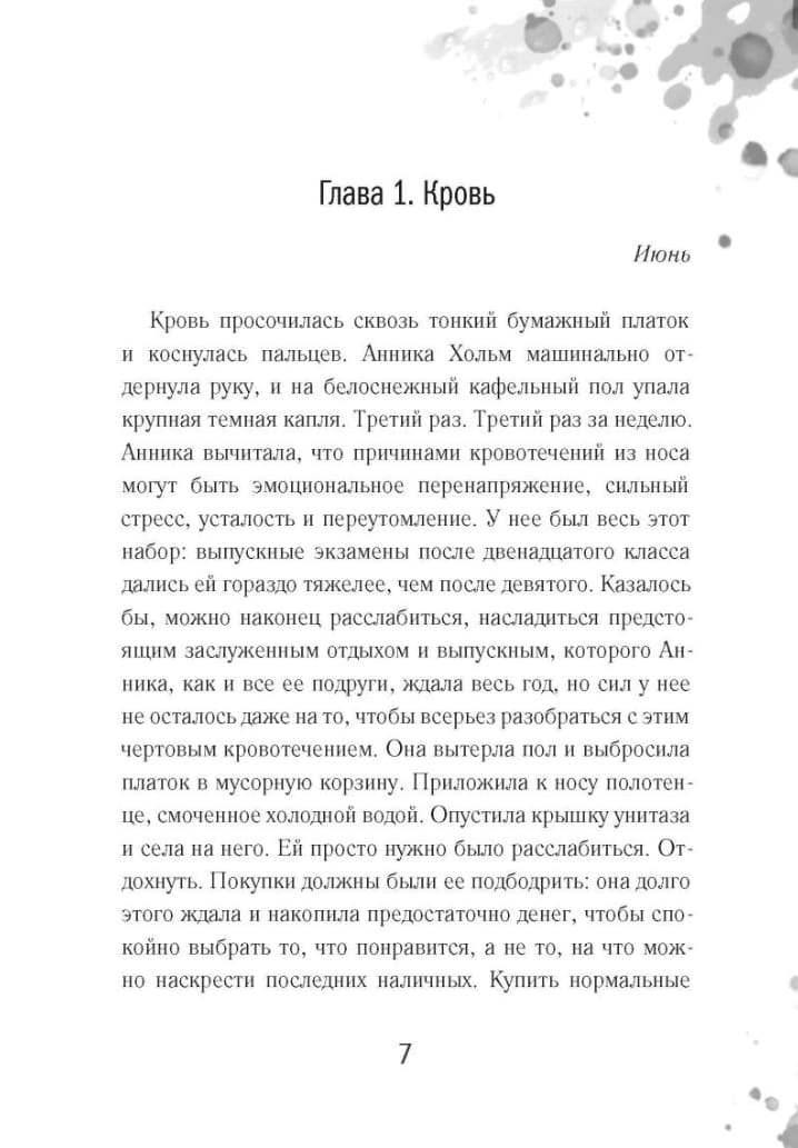 The novel immerses the reader in the atmosphere of Baltic noir and introduces the elusive maniac who appeared in the city. The police are helpless, while writer Otto Vernell has the courage to take up a joint book with Absorbent and try to understand him. But what is the price of a future bestseller? And most importantly, who is Otto now: a co-author, an accomplice, or the next victim? This is a story about how looking into the depths of your own soul can sometimes be scarier than writing a thriller with a serial killer.