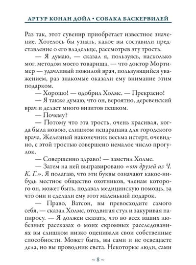 The publication introduces readers to one of the most famous works by Arthur Conan Doyle (1859-1930) — the story "The Hound of the Baskervilles". In the Baskerville family estate, shrouded in dark legends, a series of mysterious events occur. A ghost dog haunts the representatives of the family and terrifies the residents of the surrounding area. Only the famous detective Holmes and his devoted friend Dr. Watson are able to unravel the tangle of ancient secrets.