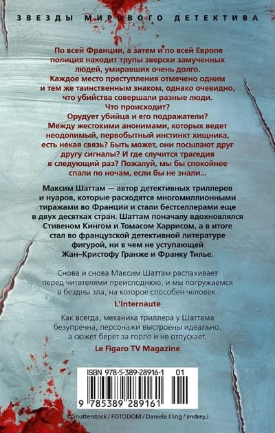 All over France, and then all over Europe, the police are finding bodies of brutally tortured people who have been dying for a long time. Each crime scene is marked with the same mysterious sign, but it is obvious that different people have committed the murders. What is going on? Is there a killer and his imitators? Is there some connection between the cruel anonymous people, driven by an irresistible, primal predatory instinct? Are they perhaps sending each other signals? And where will the tragedy happen next? Perhaps we would sleep better at night if we didn’t know...
