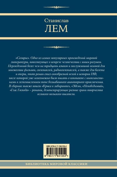 Translated into more than thirty languages and served as the basis for many films, plays, radio plays, as well as for ballet and opera, this novel became a kind of milestone in the history of SF, after which it was no longer possible to write about contact with aliens in a frivolous tone of reckless adventurous adventure. The collection also includes "The Rat in the Labyrinth", "Eden", "Invincible", "The Voice of God" - novels that demonstrate different facets of the great Polish writer's work.