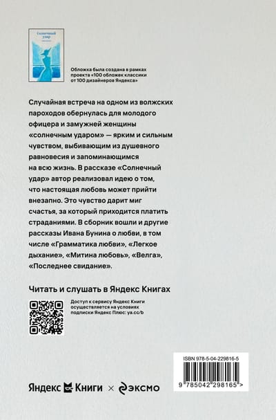 A chance encounter on a Volga steamship turns into a "sunstroke" for a young officer and a married woman—a vivid and powerful emotion that knocks them off balance and leaves a lasting impression. In the story "Sunstroke," the author explores the idea that true love can come unexpectedly. This feeling offers a moment of happiness, but is often paid for with suffering. The collection also includes other stories by Ivan Bunin about love, including "Grammar of Love," "Easy Breathing," "Mitya's Love," "Velga," and "The Last Date."