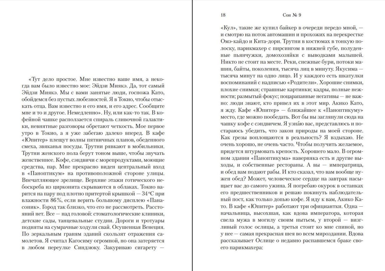 The second novel by David Mitchell, a modern classicist and two-time Booker Prize finalist for Dream No. 9 and Cloud Atlas (recently adapted by Tom Tykwer and the Wachowski brothers). Twenty-year-old Eiji Miyake arrives from his tiny island in Tokyo with one obsession: to find the father he has never seen in his life. Eiji's everyday life is subtly mixed with fantasies and dreams, as he leafs through the diaries of a torpedo man, meets a ruthless yakuza, John Lennon, and the god of thunder. Whether simple bad luck, or the invisible hand of fate leads Eiji from misadventure to misadventure, from work in the bureau of finds - in the backstage of the exclusive club "Queen of Spades", from unwitting participation in the mafia showdown - to first love ...