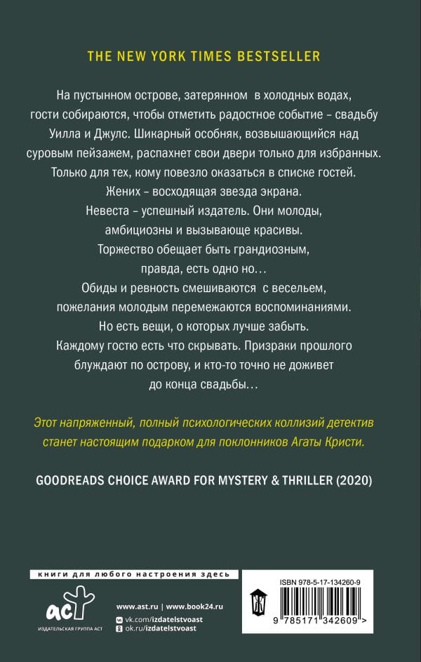 The groom is a rising screen star. The bride is a successful publisher. They're young, ambitious and devastatingly beautiful. The celebration promises to be grandiose, but there is one thing... Grievances and jealousy are mixed with fun, wishes for the young are interspersed with memories. But there are some things that are best forgotten. Every guest has something to hide. The ghosts of the past roam the island, and someone will definitely not live to see the end of the wedding...