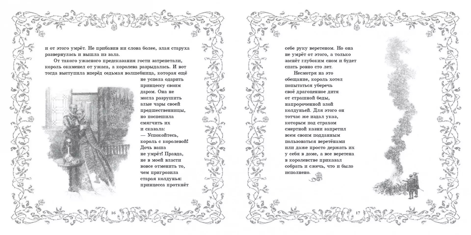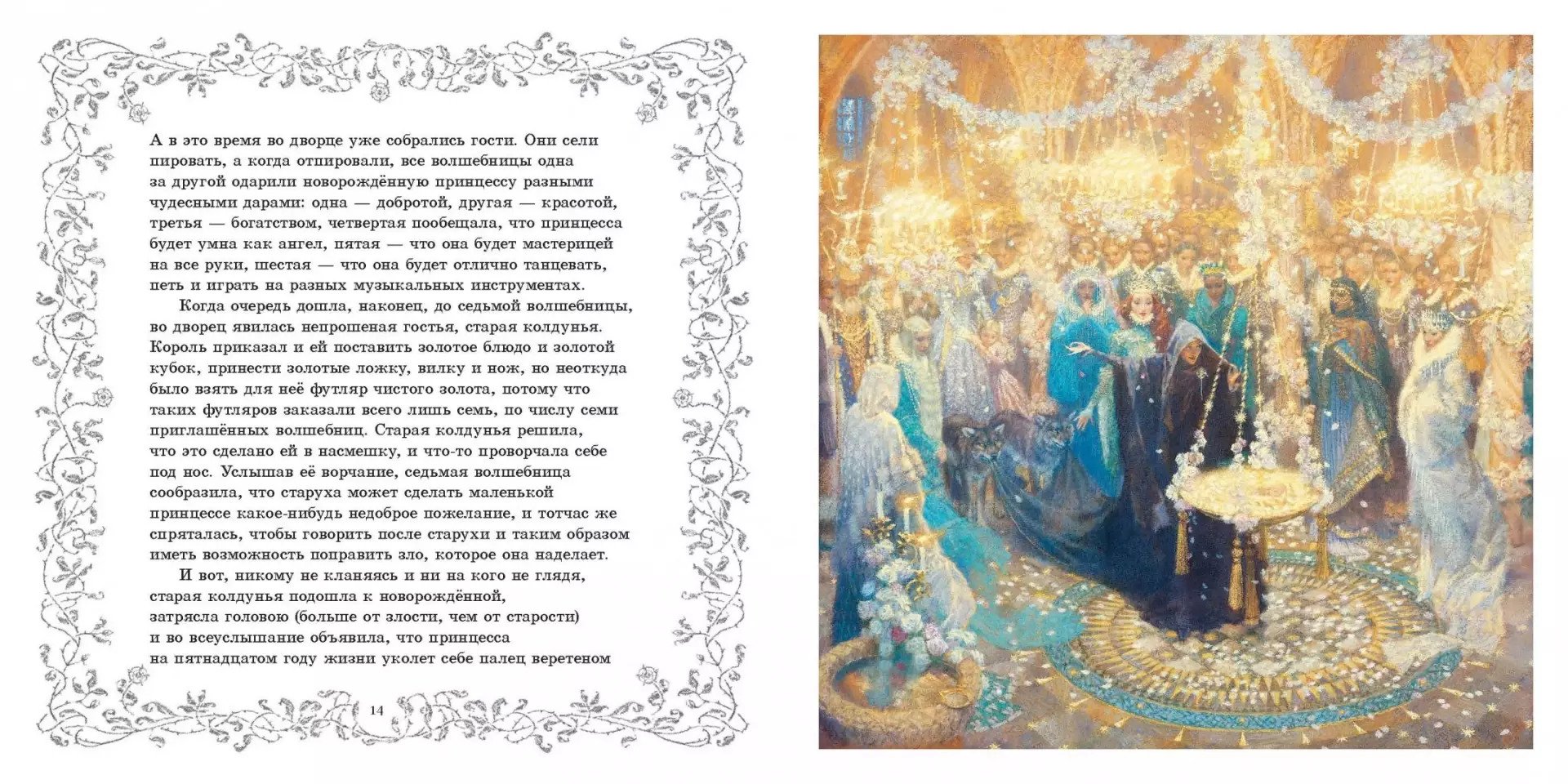 The new edition of "Sleeping Beauty" with stunning illustrations by Christian Birmingham - without exaggeration the most beautiful illustrated version of this fairy tale: the book contains 12 huge color illustrations for a whole page each and 22 black and white drawings; especially for the Russian edition of the book the artist created a series of additional design elements. For this edition we have taken as a basis the Grimm Brothers' fairy tale "The Hipscomb" translated by the outstanding Russian writer, translator and literary historian Pyotr Nikolayevich Polevoy (1839-1902) and used some fragments from Charles Perrault's fairy tale "The Sleeping Beauty" translated by the classic of Russian literature Ivan Sergeyevich Turgenev (1818-1883), to combine the advantages of both translations, and to adapt the text of the fairy tale as much as possible to Christian Birmingham's wonderful illustrations (for example, in our fairy tale, seven sorceresses are invited to the feast, as depicted on the artist's canvas and in Perrault's fairy tale, not twelve, as in the Grimm brothers' version).