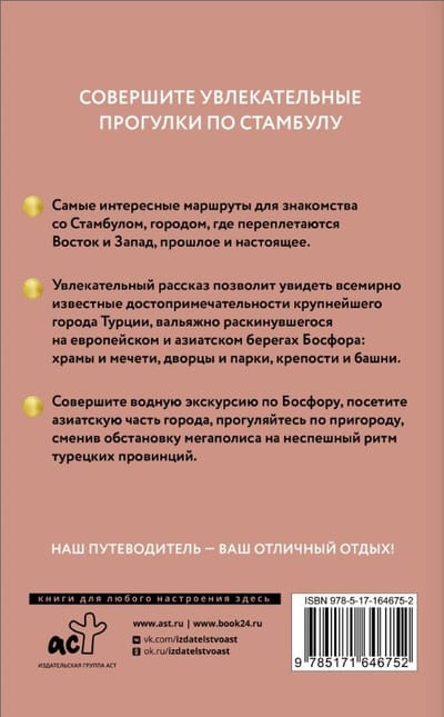 On the pages of this book you will find descriptions of the most interesting routes around Istanbul, the largest city in Turkey, spread out on the European and Asian shores of the Bosphorus. This guide will help you maintain a conversation with the multifaceted metropolis and will show you its most interesting and sometimes unexpected sides. In the guide you will also find several routes around the suburbs, which will allow you to change the atmosphere of the metropolis for the leisurely rhythm of the Turkish provinces.