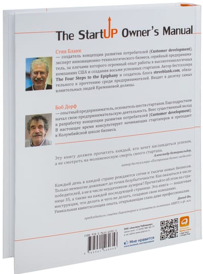You're holding in your hands the most fundamental startup management course in the world. The authors' revolutionary customer development methodology has already helped thousands of entrepreneurs create new businesses in many countries, including Russia. The idea behind this method is to leave the office as early as possible and test your business model on real customers, making subtle, sometimes significant, changes to your initial idea. Steve Blank and Bob Dorf's book not only describes the most advanced startup practices but also provides a clear step-by-step methodology for creating new businesses. We've supplemented the authors' original text with a case study from Russia to demonstrate how the customer development methodology works in our country. This book is a must-read for anyone considering starting their own business or who has already launched a new one.
