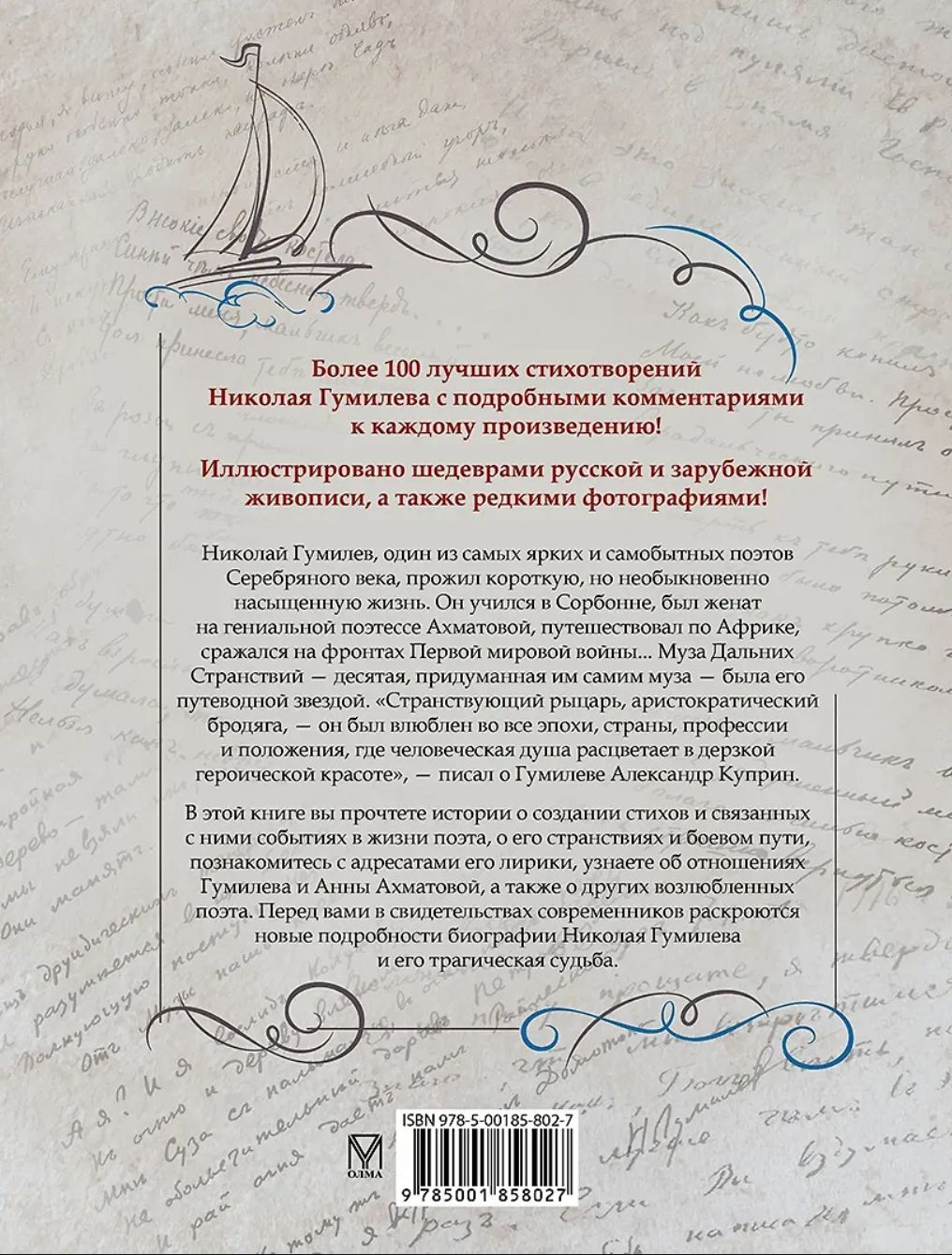 The book presents more than 100 of Nikolai Gumilev's best poems with detailed commentary on each work, illustrated with masterpieces of Russian and foreign painting, as well as rare photographs.