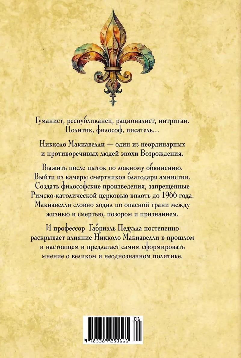 History comes alive on the pages of the book: missions, intrigues, accusations, disgrace, amnesty... Machiavelli lived and acted with determination, readily accepting new knowledge and expanding his worldview. More than one generation of politicians, philosophers, and writers have studied, challenged, praised, and promoted Niccolo Machiavelli's philosophical treatises. Professor Gabriel Pedulla not only tells about Machiavelli's life, but also impartially analyzes his works "The Sovereign", "On the Art of War" and "Discourses on the First Decade of Titus Livy".