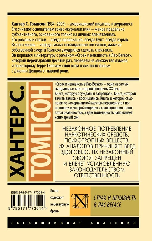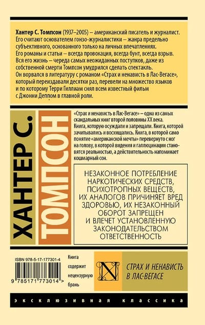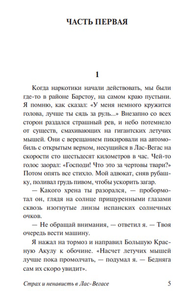 Fear and Loathing in Las Vegas is one of the most scandalous books of the second half of the 20th century. A book that was condemned and banned. A book that was read and admired. A book in which the very concept of the "American Dream" is turned on its head, in which visions and hallucinations become reality, and reality resembles a nightmare.