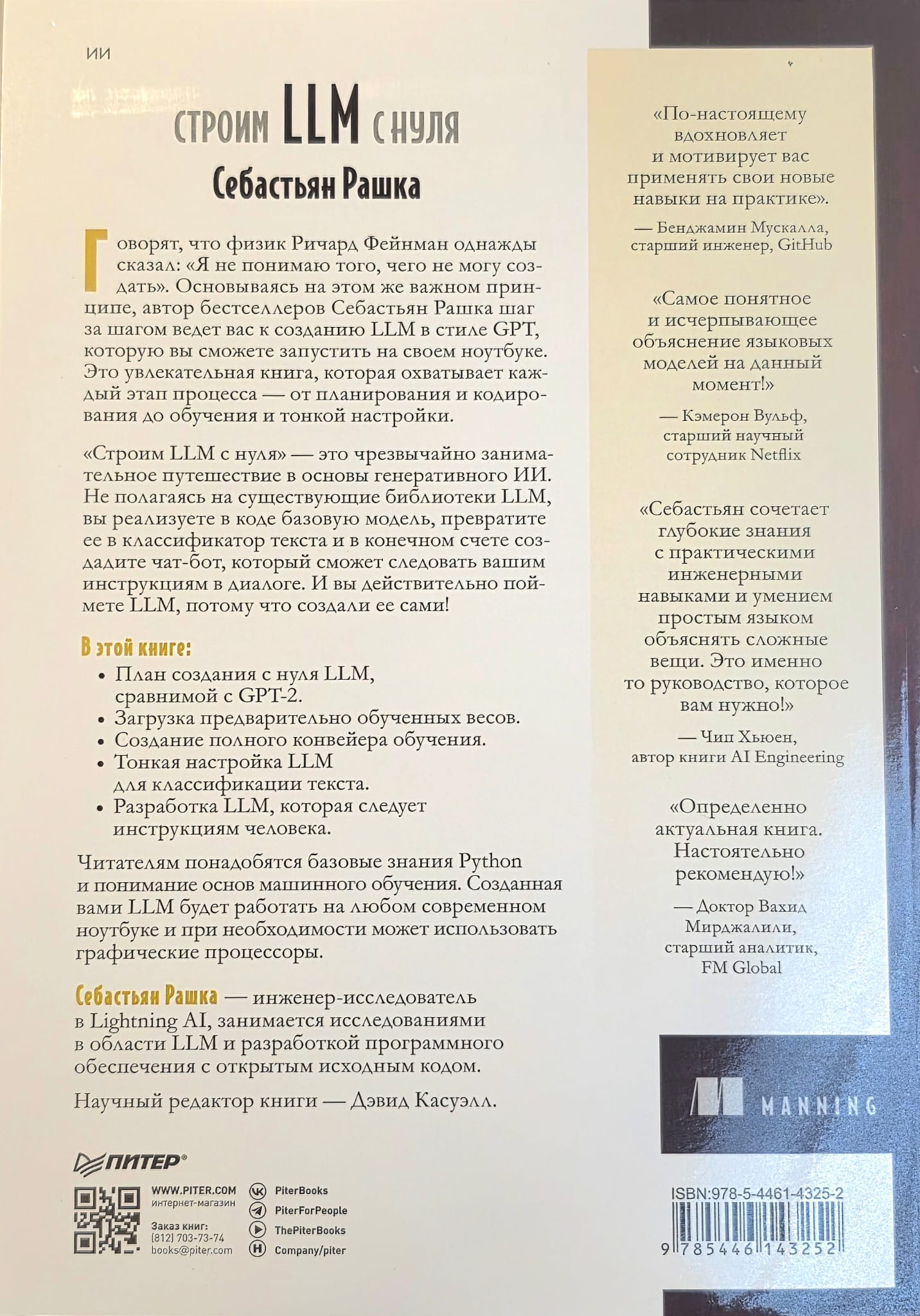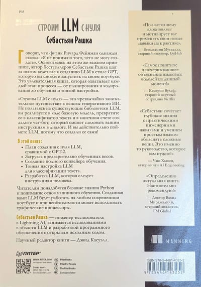 Physicist Richard Feynman is said to have once said, "I don't understand what I can't create." Based on this same important principle, bestselling author Sebastian Raschka takes you step by step through building a GPT-style LLM that you can run on your laptop. This engaging book covers every step of the process: from planning and coding to training and fine-tuning.