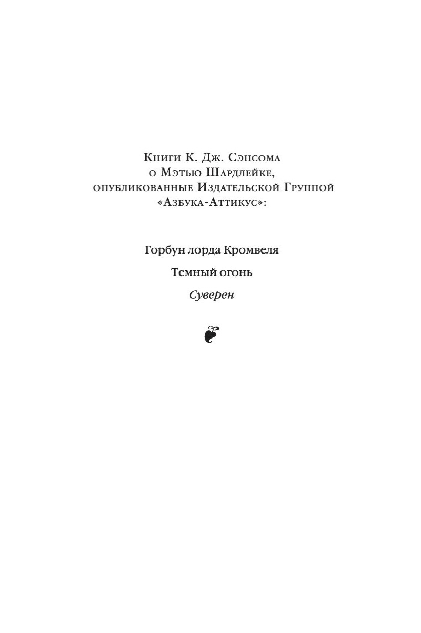 In the world of literary heroes and in the minds of today's readers, the image of Matthew Shardlake occupies a place of honor alongside such famous figures as Sherlock Holmes, Hercule Poirot, Nero Wolfe, and Commissioner Maigret.