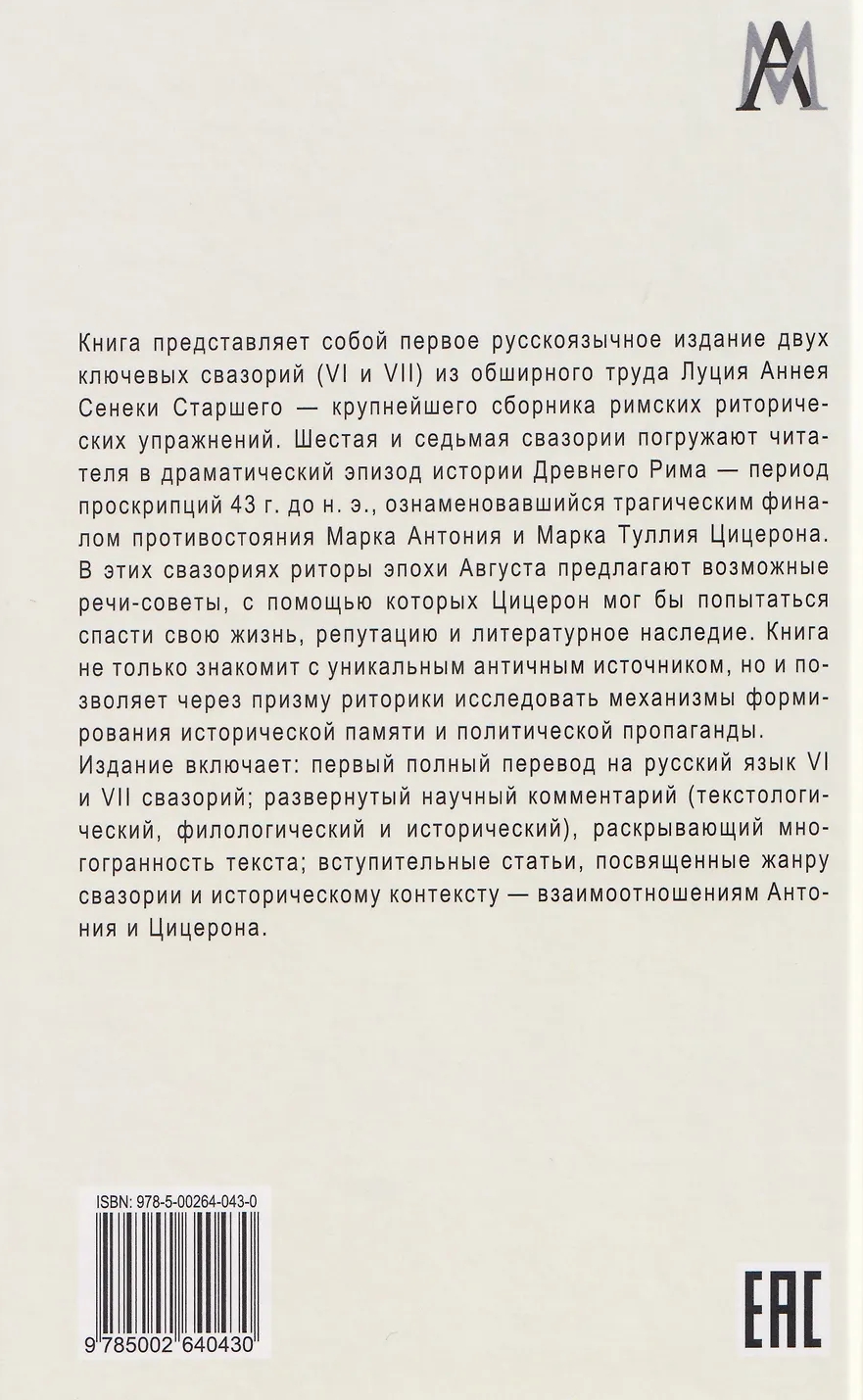 Imagine hearing the voices of Ancient Rome—not the dry lines of chronicles, but the living, passionate speeches that decide the fate of a great orator. This is precisely the opportunity offered by this unique edition of the VI and VII Svasoria by Lucius Annaeus Seneca the Elder, with commentary by Russian scholars.