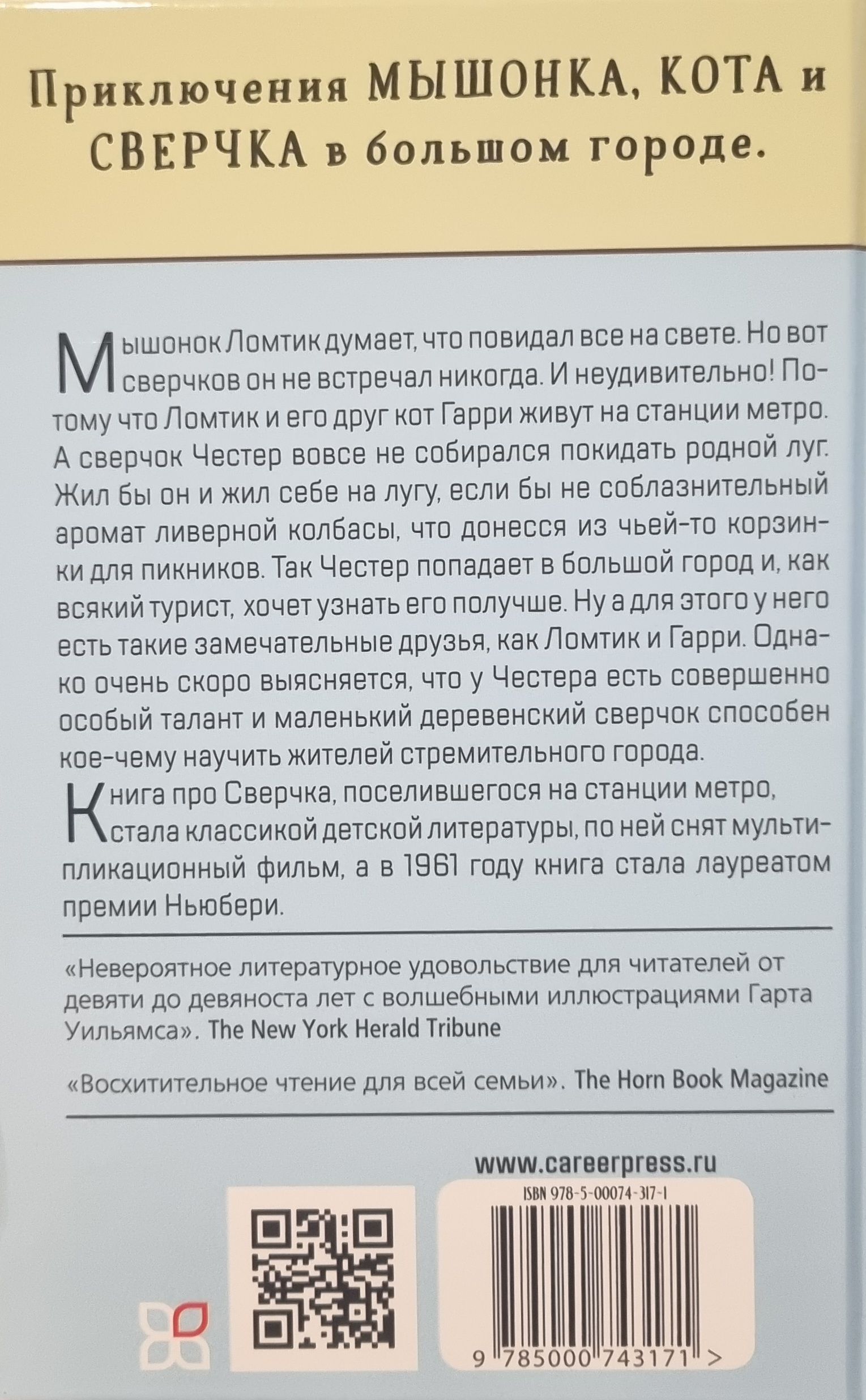 The book about the Cricket who settled in the subway station became a classic of children's literature, an animated film was made based on it, and in 1961 the book became a Newbery Award winner.