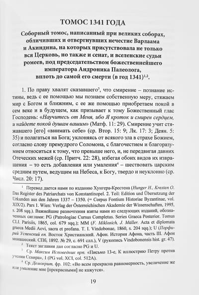 This book is a collection of documents reflecting the confrontation between St. Gregory Palamas and his supporters and Barlaam and Akindynos and their followers, which took place in the 14th century and culminated in the so-called Palamite Councils of 1341–1368. This confrontation, also known as the Palamite Controversy, marked the beginning of a theological debate about the relationship between essence and energy in God that continues to this day and has echoes in modern theology. The book presents nearly all the documents relating to the councils, most of which have not yet been published in Russian.