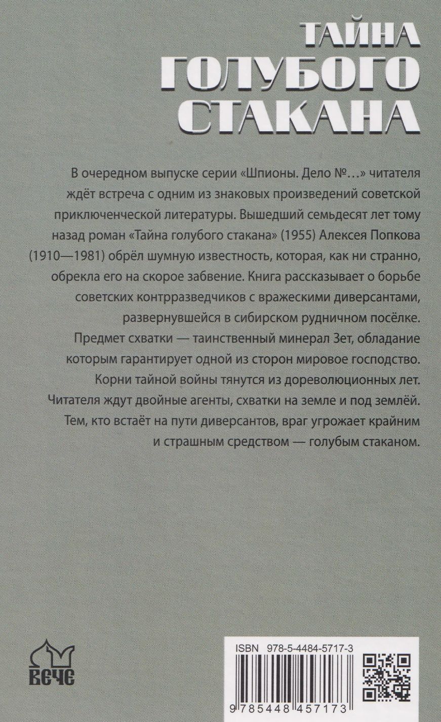 In the latest installment of the "Spies. Case No...." series, readers will encounter one of the iconic works of Soviet adventure literature. Published seventy years ago, the novel "The Secret of the Blue Glass" (1955) by Alexei Popkov (1910-1981) achieved widespread notoriety, which, oddly enough, doomed it to rapid oblivion. The book tells the story of the struggle between Soviet counterintelligence agents and enemy saboteurs, unfolding in a Siberian mining town. The object of the conflict is the mysterious mineral Z, the possession of which guarantees world domination for one of the sides. The roots of this secret war stretch back to pre-revolutionary times. Readers will encounter double agents and clashes above and below ground. Those who stand in the way of the saboteurs are threatened with a last resort and a terrible weapon: the blue glass.