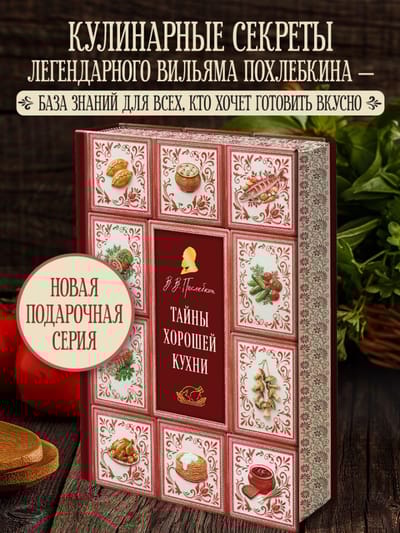 The new series "William Pokhlebkin. The Golden Collection" speaks for itself. It will include the most sought-after, best-selling books of recent years. We've changed the format, created a stunning design to match the remarkable texts, and painted over the edges. To bring joy to William Vasilyevich's fans, to introduce him to new generations. So that he will be known, remembered, and admired for his erudition as a historian, his inspiration as a publisher, and his love of culinary science!