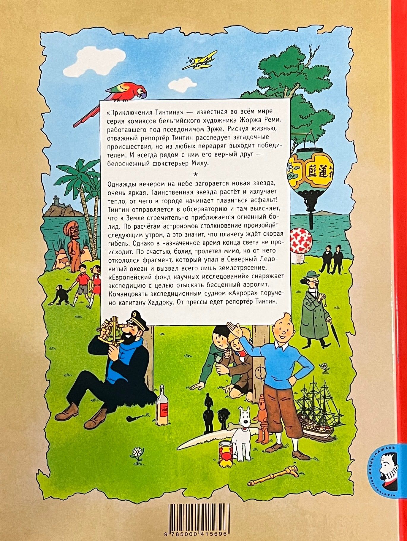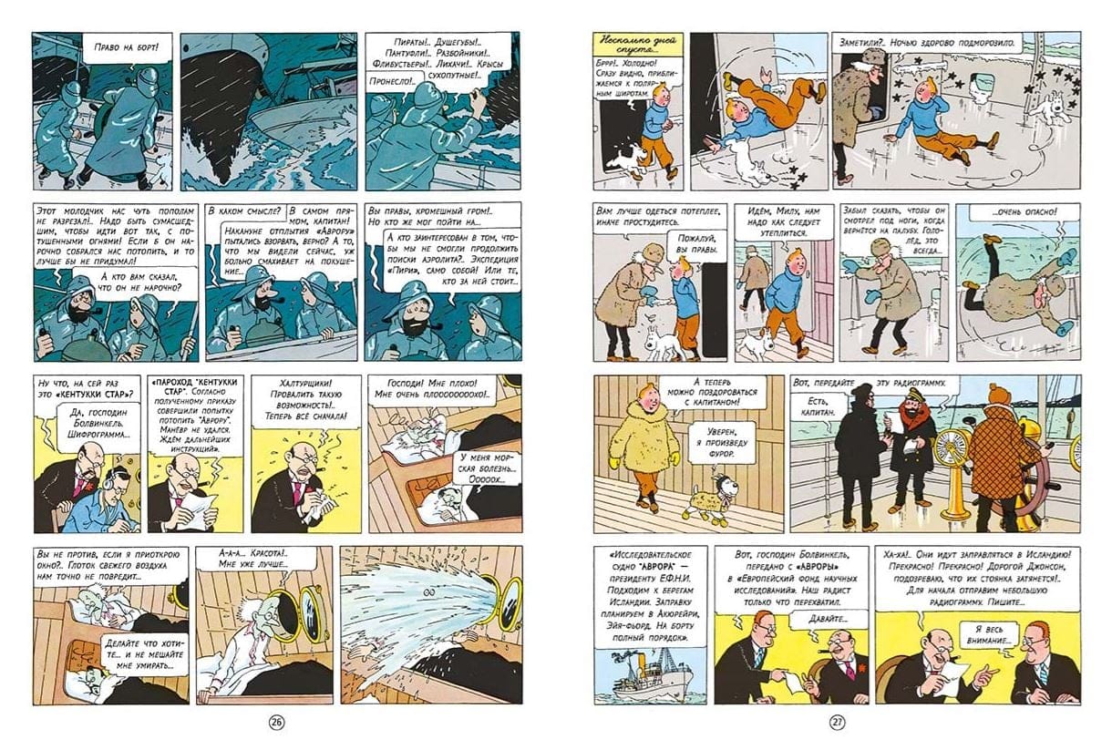One evening a new star, very bright, lights up in the sky. The mysterious star grows and radiates heat, which makes the asphalt in the city melt. Tintin goes to the observatory and there he finds out that a fiery bolide is rapidly approaching the Earth. According to the calculations of astronomers collision will occur next morning, which means that the planet is waiting for the imminent death. However, at the appointed time, the end of the world does not happen. Fortunately, the bolide flew by, but from it broke off a small fragment, which fell into the Arctic Ocean and caused only an earthquake. "European Foundation for Scientific Research" equips an expedition to find the aerolite. Captain Haddock is in command of the expedition ship Aurora. Tintin, a reporter, is traveling with the press.