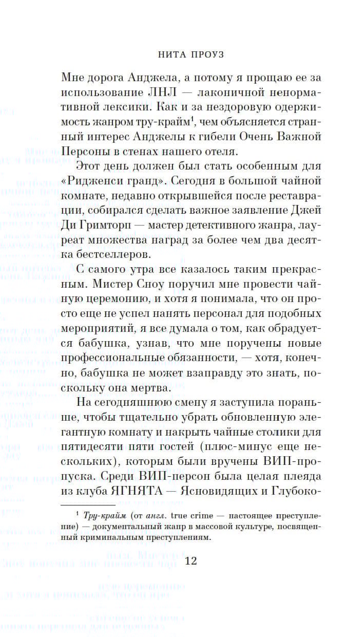 Molly Gray isn't like everyone else. Sometimes it's hard to talk to people. But thanks to her talent to clean up, she became a senior maid in a magnificent five-star hotel. And just at the moment when her career is on the rise, the world is turned upside down: the famous detective author J.D. Grimthorpe, speaking to the audience at the hotel, falls dead on the floor, without having time to make some important statement. During the investigation, it becomes clear that this death is a real murder. There are more than enough suspects; a high-profile case threatens the hotel's impeccable reputation. Molly realizes that only she has the key to the identity of the killer. She once visited the house of Grimthorpe. Molly must solve the mystery as soon as possible. Because she knows for sure that secrets don't stay buried forever. . .
