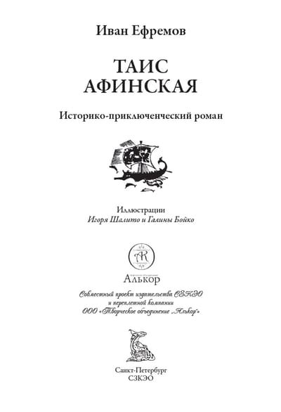 Ivan Antonovich Efremov worked for several years on his famous historical-adventure novel "Tais of Athens". He processed mountains of historical material - the effect of a careful and methodical scientific approach to the processing of information. After all, Ivan Antonovich existed as if in two persons. One he was known as a major Soviet paleontologist, organizer of science, Stalin Prize winner, head of the laboratory and participant in more than three dozen scientific expeditions. The dinosaur skeletons he found in the Gobi Desert were included in the golden fund of the Moscow Paleontological Museum. Outside of scientific circles, Ivan Antonovich became known as a major science fiction writer of the "thaw" period. Even during his lifetime, the writer was spoken of as a classic of literature, "the great space dreamer", who stood on a par with such foreign coryphees of science fiction as Ray Bradbury, Arthur C. Clarke and Isaac Asimov. The territory of science fiction allowed Efremov to touch on topics that were almost never covered in Soviet literature. He wrote about the problem of overpopulation of the planet, its limited resources, the coming globalization, the appeal to the subconscious ... In his novel "Tais of Athens" he boldly raised the theme of free love and talented painted many scenes with eroticism. In this work, Efremov's thought rushes not into space, not to distant stellar civilizations, but into the depths of centuries, which separate us from the past as reliably as from distant planets - the cosmic vacuum. In "Tais of Athens" Efremov managed to overcome this barrier, and we see thanks to the talent of the author in this novel, the ancient world is not frozen in the marble of sculptures, but alive, colorful, fluttering and always exciting. The book is decorated with illustrations made by two artists: spouses Igor Naumovich Shalito and Galina Nikolaevna Boyko. In the sixties of the last century, Shalito's drawings, appearing on the pages of the magazine "Technics for Youth", immediately attracted the attention of readers. They looked avant-garde and quite different from the illustrations made in the style of socialist realism. The covers of the books that Igor Naumovich decorated with his drawings for the series "Eureka", published in the publishing house "Young Guardia" looked just as catchy and unusual. In 1956, Shalito graduated from the Moscow Architectural Institute, and the skills he acquired there allowed him to boldly cross elements of images in his drawing compositions. These are the kind of drawings you see on the pages of this book. Together with his wife, Igor Naumovich executed illustrations for all of Efremov's landmark works - "The Andromeda Nebula", "The Hour of the Bull", "The Razor's Blade" and "The Tais of Athens".