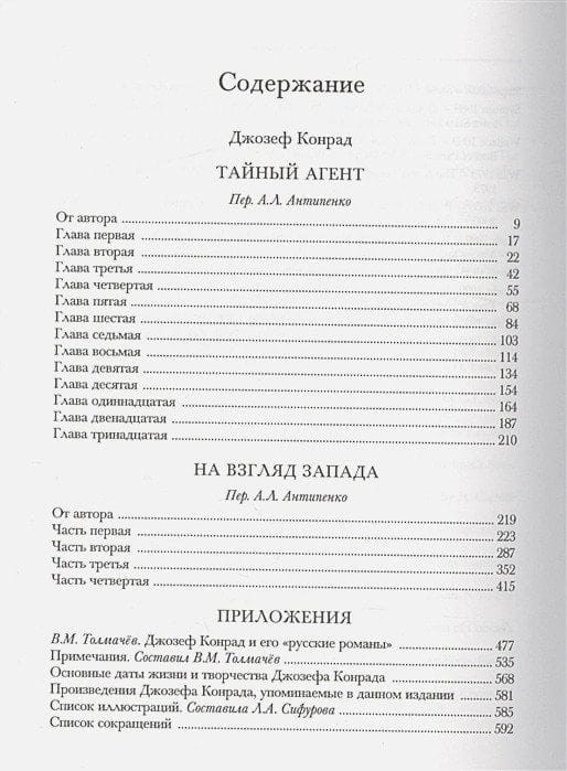 This edition allows a new look at the classic of English literature Joseph Conrad (1857 - 1924), who is known to Russian readers as a marinist and author of adventure novels set in exotic countries. Conrad's personality is unique in its own way: a Pole by birth, he, not knowing English as a child, mastered it masterfully and became not only a British merchant marine captain, but then a writer whose adventurous and psychological novels prepared the emergence of European modernism. His skill was recognized even by such an aesthete as Henry James. It is no less paradoxical that the author, who declared his dislike of everything Russian (Russian literature, Russian language, Russian theological exploration, the Russian revolutionary idea), at the very height of his creativity creates two novels - "Secret Agent: A Simple History" (1907) and "In the Eye of the West" (1910), united precisely by the Russian theme, in the interpretation of which Conrad largely follows F.M. Dostoevsky. In both novels we find and intense intrigue, and colorful characters, and a deep psychological analysis of the adherents of terror, and love theme, and criticism of modern Western civilization from the position of a kind of messianism.In "The Secret Agent" - a novel that was highly appreciated by Thomas Mann - is brought out recruited by the embassy of one eastern power (meaning the Russian Empire), a man of the London "underground", forced under pressure from his "curator" from the embassy to organize the bombing of the Royal Observatory in Greenwich - for the sake of the international fight against terror to portray an attempt on the very foundations of Western civilization and science. Conrad describes in detail how the police follow the criminal's trail and what collisions arise among the police officials themselves in connection with the disclosure of this secret; he paints in rich colors portraits of anarchists, the family tragedy of the title character, who turns out to be Conrad's characteristic double: both an anti-hero and a hero "on the contrary". This exquisitely psychological novel is often considered the most striking satirical work of Conrad, it is imbued with irony and black humor.In the novel "On the look of the West" action begins in St. Petersburg (the terrorist bombing of the gendarme general de P. P., who was killed in a terrorist attack on the city of St. Petersburg).; the plot is based on a real event - the assassination of the Minister of the Interior and chief of the Gendarme Corps Vyacheslav Konstantinovich von Plevé on July 1528, 1904 in St. Petersburg by Yegor Sozonov, a twenty-five-year-old terrorist student from Yevno Azef's gang), and continues in Geneva, among fanatical revolutionaries-emigrants (prototypes of the protagonists are Mikhail Alexandrovich Bakunin, Prince Peter Alexeyevich Kropotkin, Sergei Mikhailovich Stepniak-Kravchinsky, Sofia Lvovna Perovskaya, Evno Fishel Azef (aka Yevgeny Filippovich Azef) and other Russian anarchists, nationalists, revolutionaries), where the student recruited by the police is sent from Russia.Despite the picturesque external canvas of events, the true theme of Conrad's novels - the tragedy of a loner who is overcome by mental anguish or torment of conscience, the fatal game of man with fate, the fatal loss of innocence of the spirit, the curse of gold, the crisis of positivism, the precariousness of existence, the decline of Europe, the profound confrontation between East and West, man and woman, chaos and order. Behind the superficial layers of satire, politics, naturalism, psychological sketches, something profoundly lyrical and even archetypal emerges - a dimension that can conjure up images and whole scenes from the New Testament, as well as Homer, Shakespeare, and Dostoevsky.Conrad's "Russian novels," known throughout the world, have influenced many European writers, among them André Gide, Henri Malraux, Jean-Paul Sartre, Ernest Hemingway, Francis Scott Fitzgerald, William Faulkner, Graham Greene, George Orwell, John Le Carré, Arthur Koestler, and Iñazio Silone.This edition is provided with an article on the work of Joseph Conrad, notes on the novels, a chronology of the writer's life and work, and illustrations.