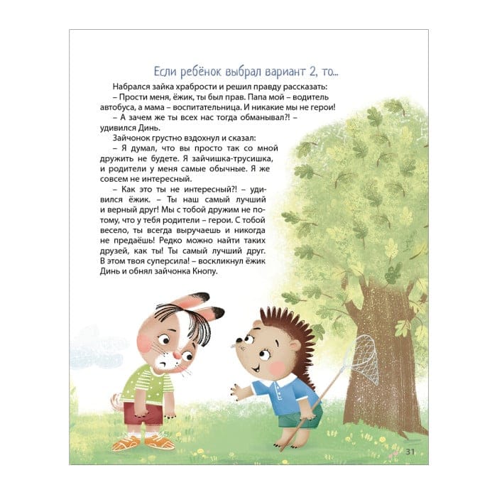 The book consists of tales-trainer, in which the child will find the right way out of the situation himself, safely and effectively prepare for a life full of difficult choices and decisions. Of course, it is much easier to give a child a ready answer, but teaching a child to think and make a decision thoughtfully - a difficult task, which parents can now cope with themselves. The author of this book is a child and adult practicing psychologist and a certified Gestalt therapist. Experience of more than 13 years of work with children from 3.5 years old, author of a blog, a regular guest of the "Lecture Hall for Parents".