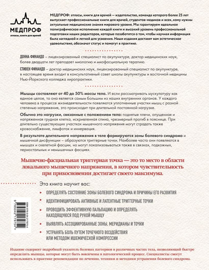 Myofascial pain syndromes are one of the fastest-growing problems facing physicians, osteopaths, acupuncturists, as well as physical therapists, occupational therapists, and massage therapists. In their book, Donna and Stephen Finando have distilled a wealth of information on myofascial pain treatment into a user's guide for practitioners. They explore a wide range of pain sensations and present assessment and palpation techniques to reduce trigger points—and thereby relieve pain—in the most clinically significant areas of the body's musculature.