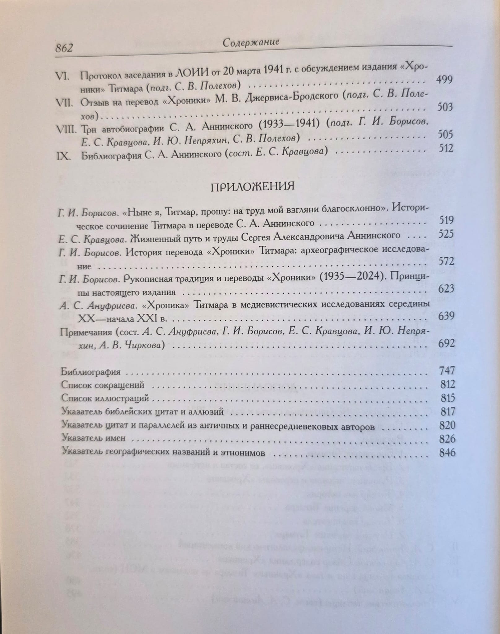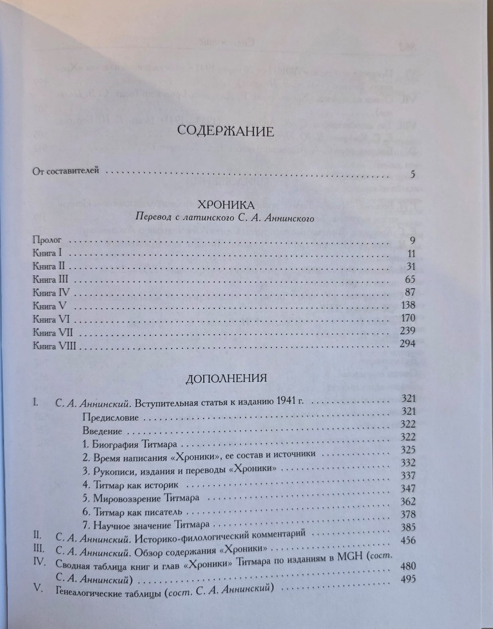 Over the course of five years, the compilers accomplished a colossal amount of work: they compared the translation with Thietmar's original manuscripts and all previous publications of this source, worked on two surviving typewritten copies of the translation, compiled a modern commentary, pieced together the life of S.A. Anninsky, supplied the publication with scholarly articles, and demonstrated that to this day, S.A. Anninsky's translation remains one of the most accurate translations of Thietmar of Merseburg's "Chronicle."