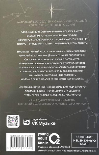 Seoul, present day. A routine evening subway ride turns into an unthinkable disaster. Passengers are faced with a situation in which they have no choice but to obey to survive. Total chaos ensues, and only unremarkable office worker Kim Dokja remains calm. He knows exactly what will happen next. The subway car, the passengers' reactions, even the strange creature that appears to observe the unfolding of this sadistic scenario—it's all happened before in his favorite web novel, so unpopular that Kim Dokja became its only reader. And now, the only one who knows where the plot is heading, he must use this knowledge to survive the impending apocalypse!