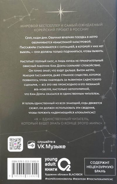 Seoul, present day. An ordinary evening subway ride turns into an unthinkable disaster. Passengers are faced with a situation in which they have no choice but to obey in order to survive. Total chaos ensues, and only unremarkable office worker Kim Dokja remains calm. He knows exactly what will happen next. The subway car, the passengers' reactions, even the strange creature that appears to observe the unfolding of this sadistic scenario—it all happened before in his favorite web novel, so unpopular that Kim Dokja became its only reader. And now, the only one who knows where the plot is heading, he must use this knowledge to survive the impending apocalypse!