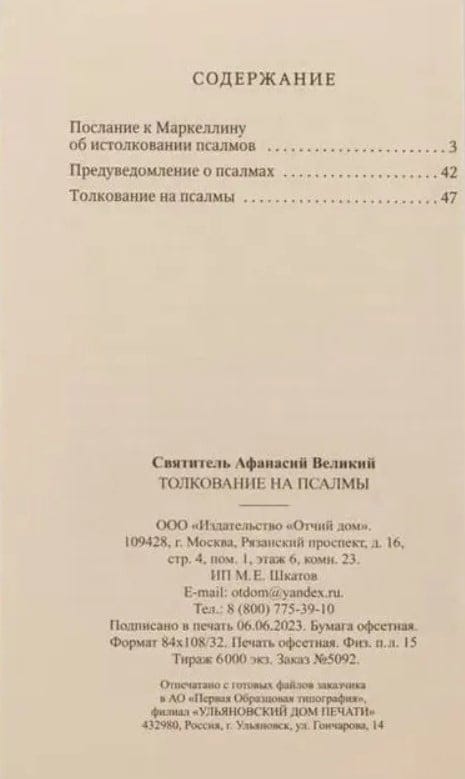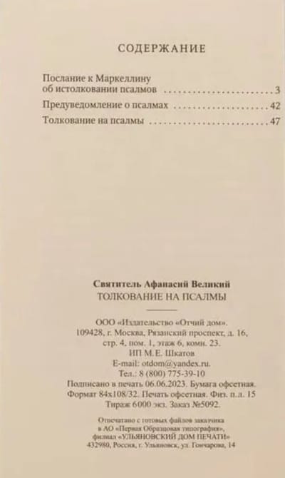 St. Athanasius of Alexandria (4th century), one of the great Greek Fathers of the Church, apologist and defender of Orthodoxy, left a rich spiritual heritage, including works on the interpretation of Holy Scripture. Already in the epistles preliminary to the "Interpretation..." St. Athanasius gives a certain classification of psalms (narrative, exhortation, thanksgiving, etc.) and on this basis gives instructions to readers in what circumstances what psalms should be read. Directly in "Interpretations..." the saint reveals both the historical and spiritual and moral background of the content of the psalms, explains words and expressions that may seem incomprehensible.