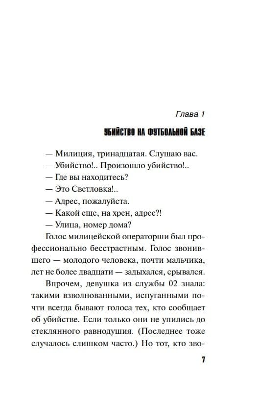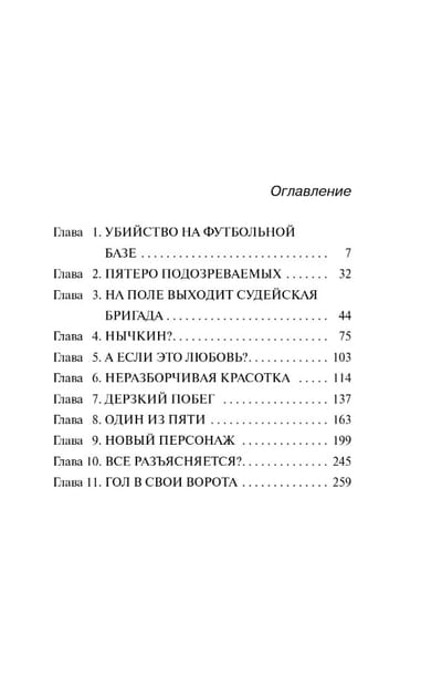 The richest and most famous football players, beloved by millions, had gathered at a sports center outside Moscow. Nothing was supposed to stop the stars from relaxing and training. But one night, one of them was found naked in a stranger's bed with his throat slit. There was no doubt: the killer was one of the six people who were with him that night. One of the chosen ones... But who was he? And why did he commit the crime?