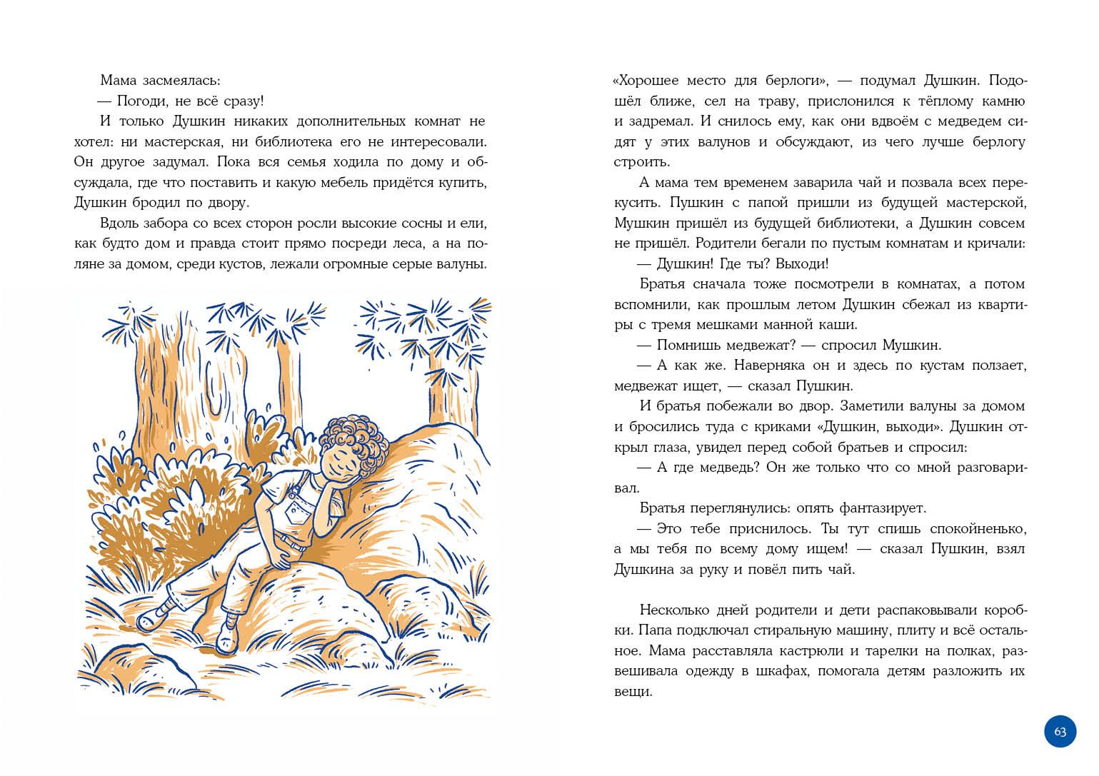 Pushkin, Mushkin, Dushkin (and actually Pasha, Misha and Danya) are ordinary children and live in an ordinary city family. But something extraordinary happens to them all the time. They make up their own games and find adventures, but they never know if the events are real or if all these miracles seem to them.