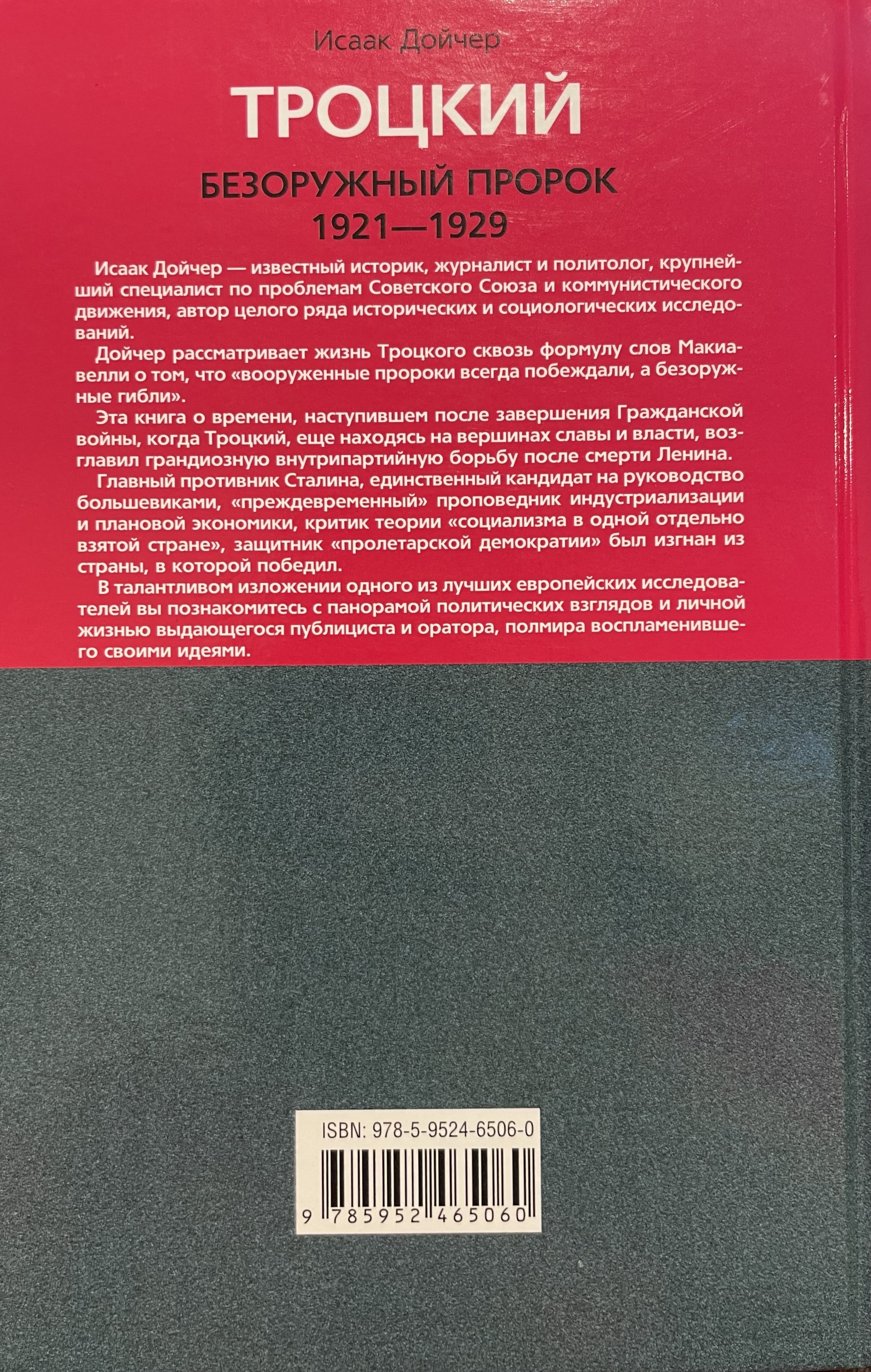 Isaac Deutscher, the author of numerous historical and sociological studies, examines Trotsky's life through Machiavelli's dictum that "armed prophets always triumph, while the unarmed perish." He was exiled from the country where he had won.