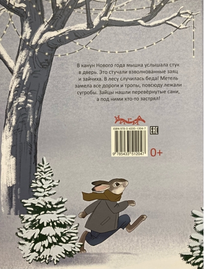 On New Year's Eve, the mouse heard a knock on the door. It was the worried hare and his wife. Something terrible had happened in the forest! A snowstorm had covered all the roads and paths, and snowdrifts lay everywhere. The hares had found an overturned sleigh, and someone was stuck underneath it!