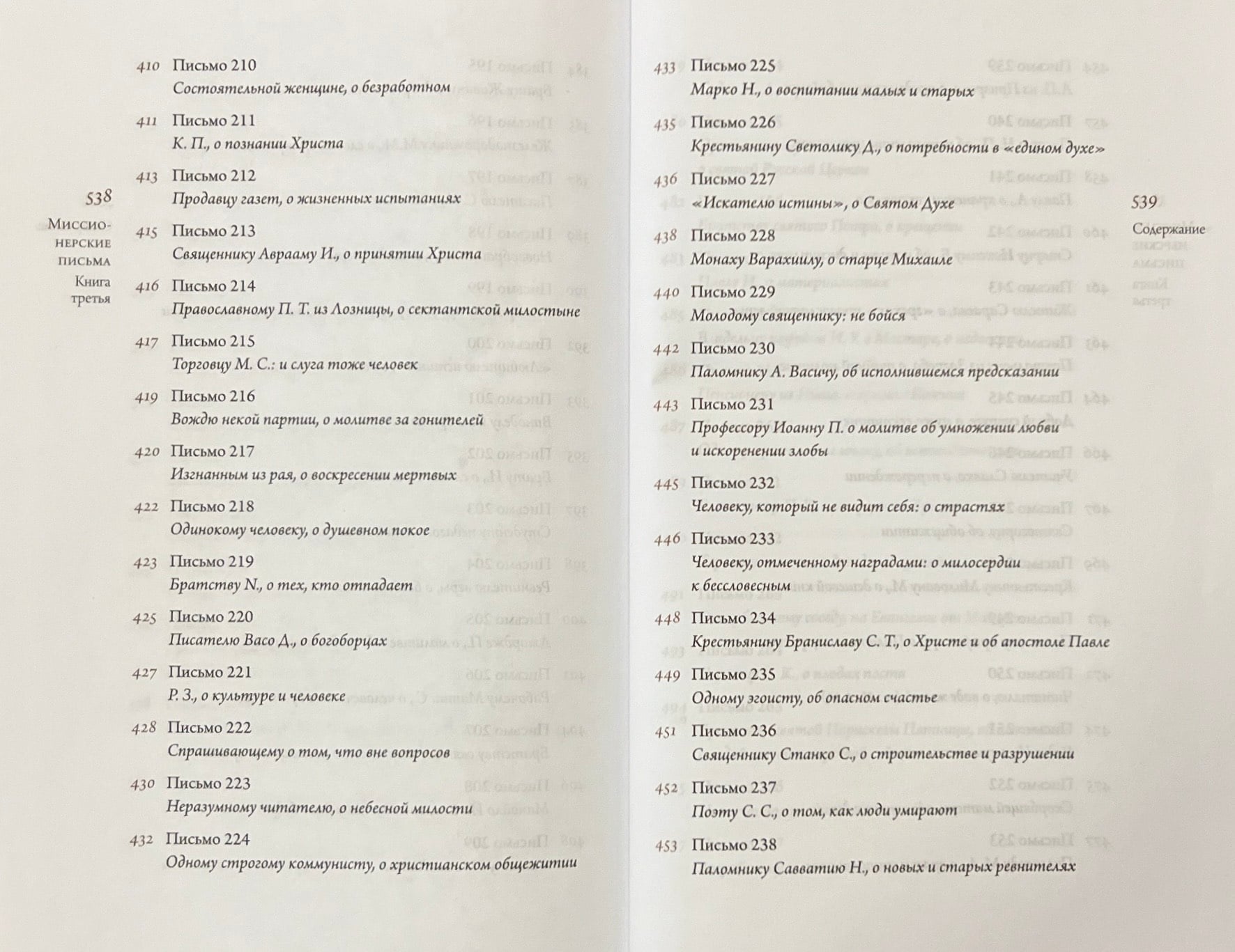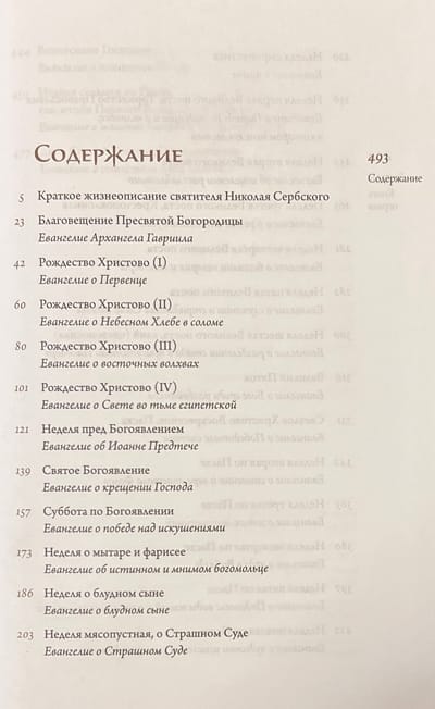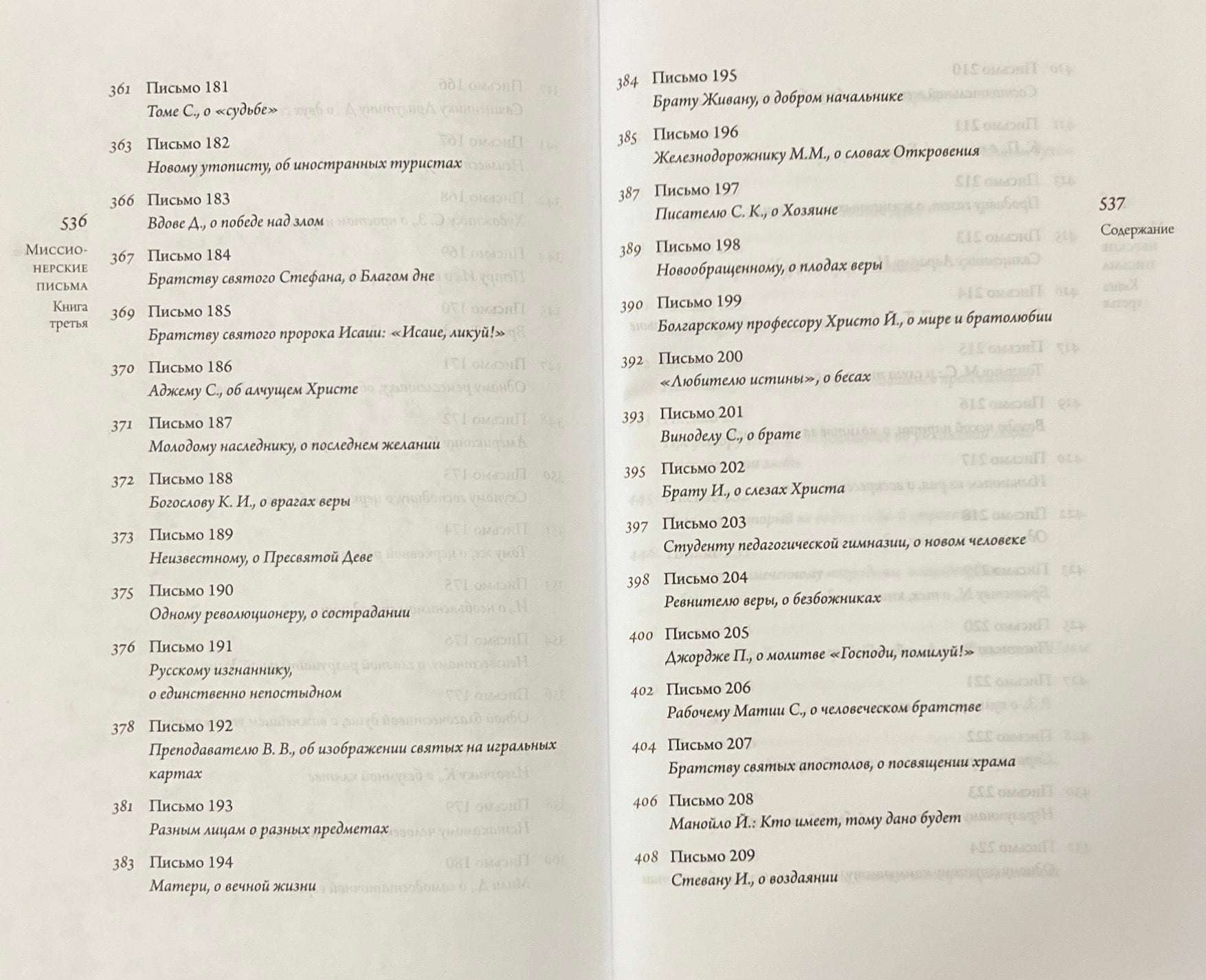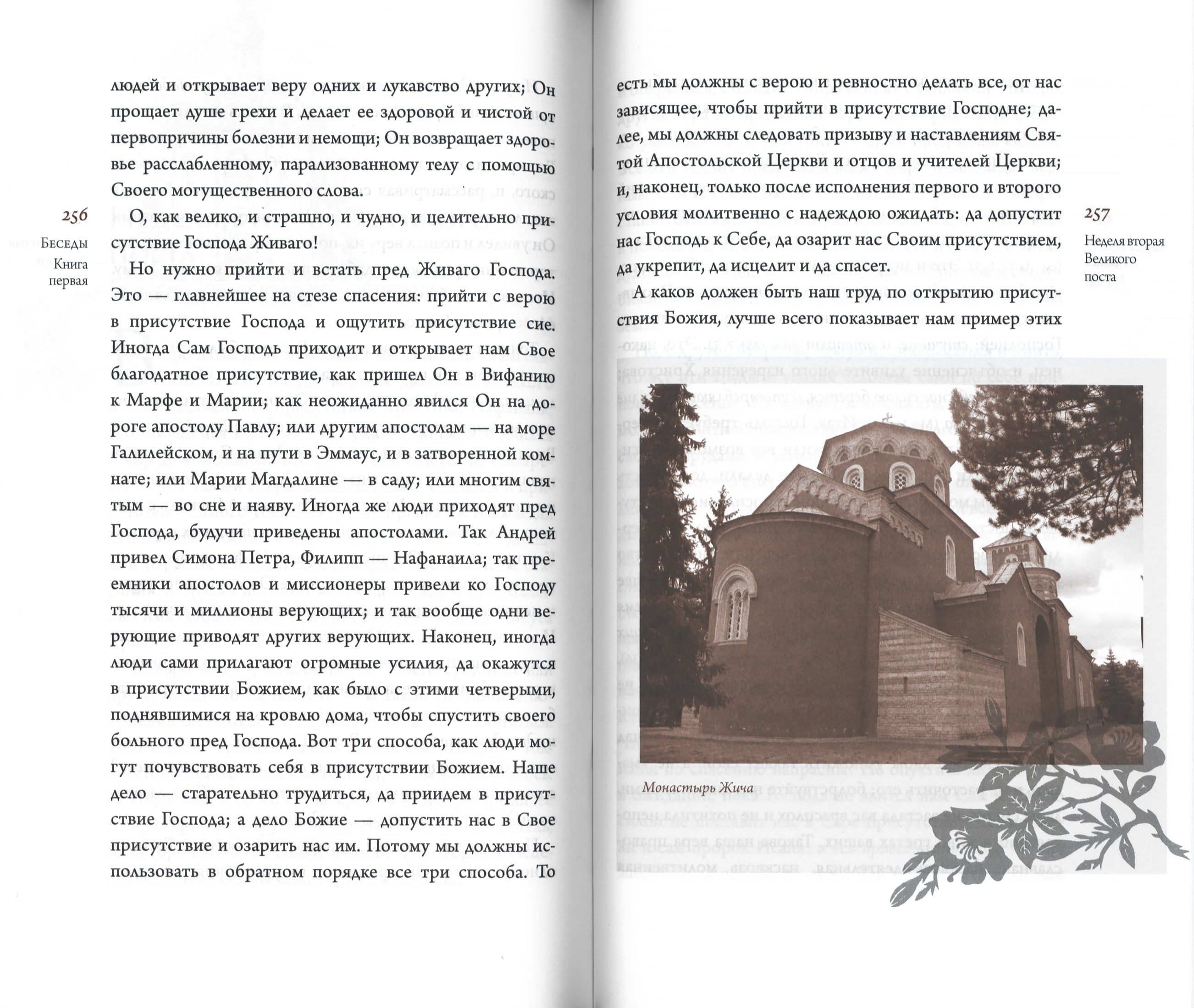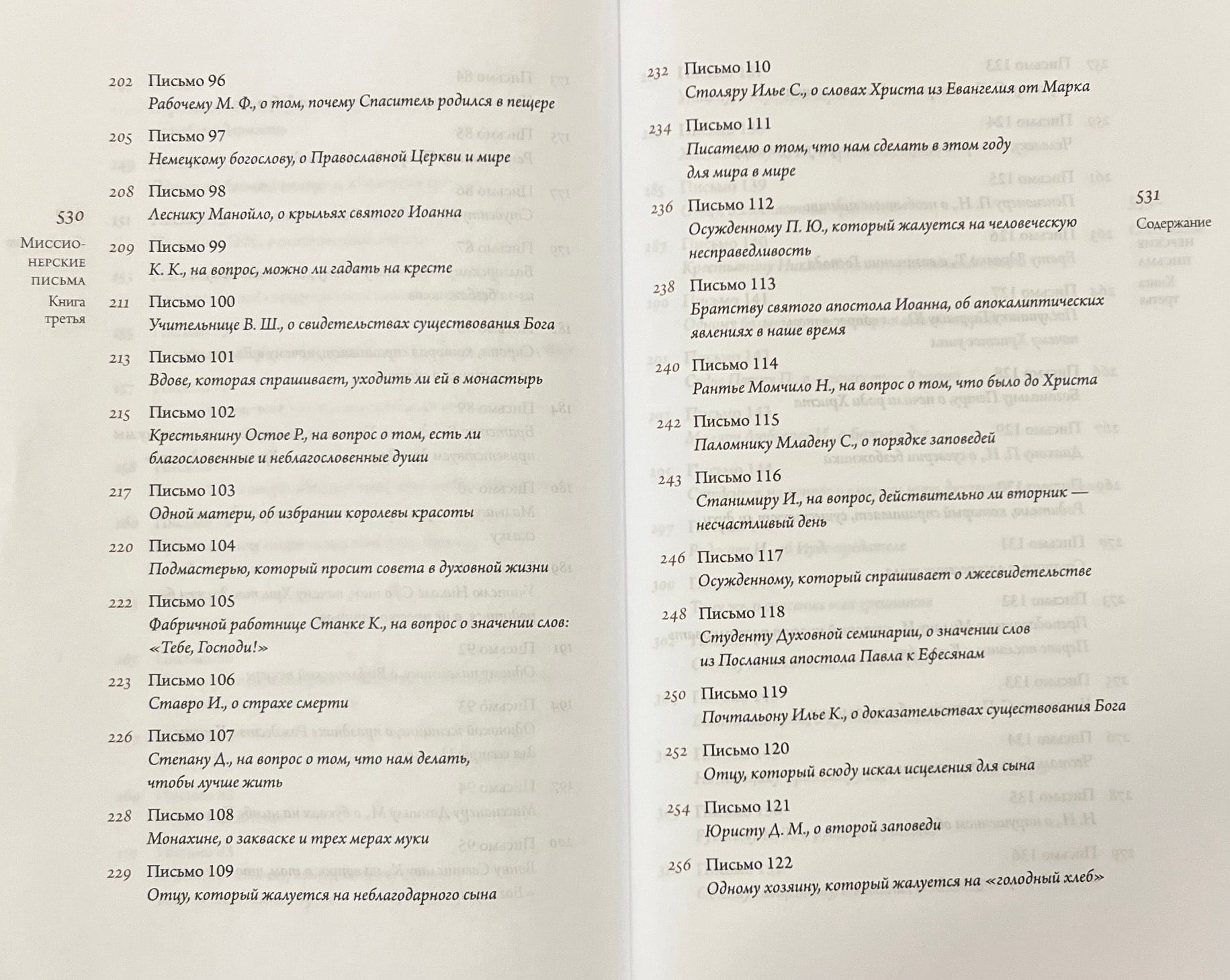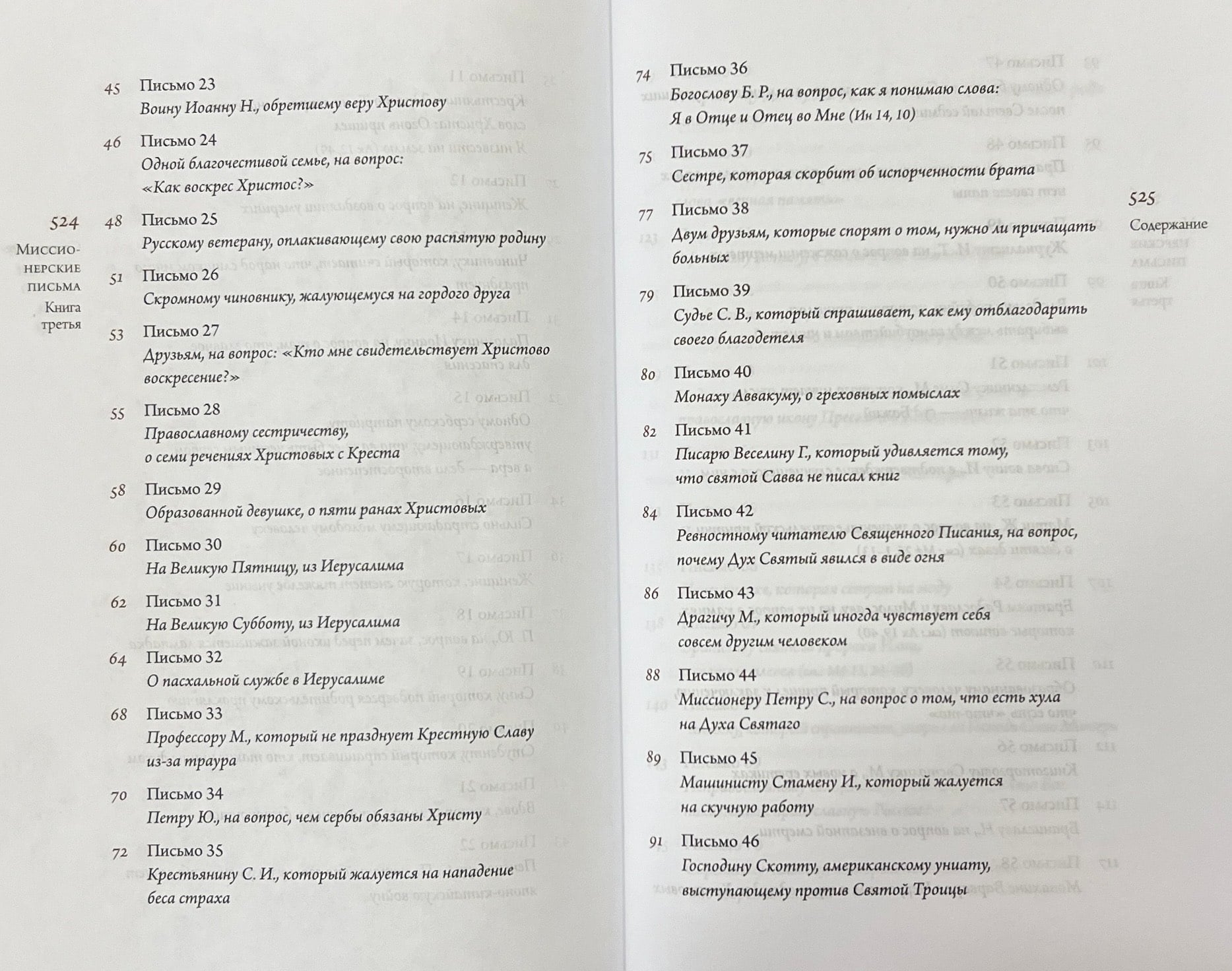 The first and second books of the collection include St. Nicholas of Serbia's talks on Sunday Gospel readings, given by him in different years. The third book of the collection includes "Missionary Letters" - the saint's answers to various questions from the laity.