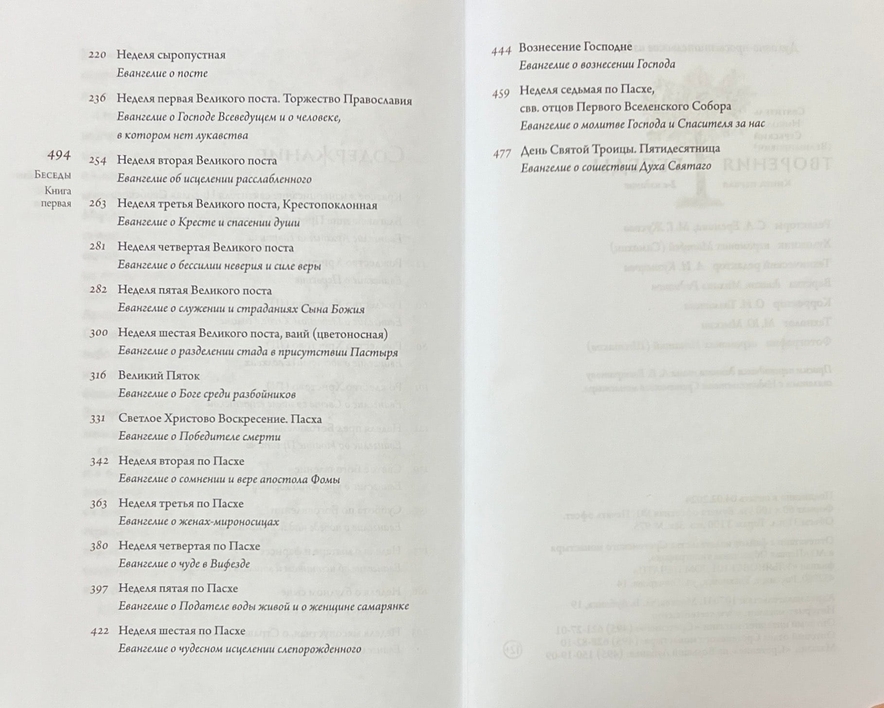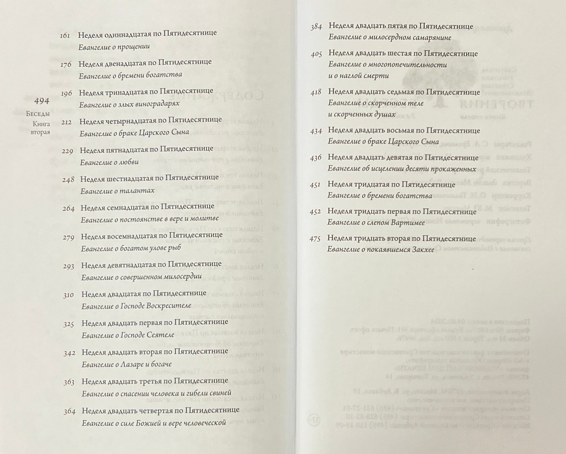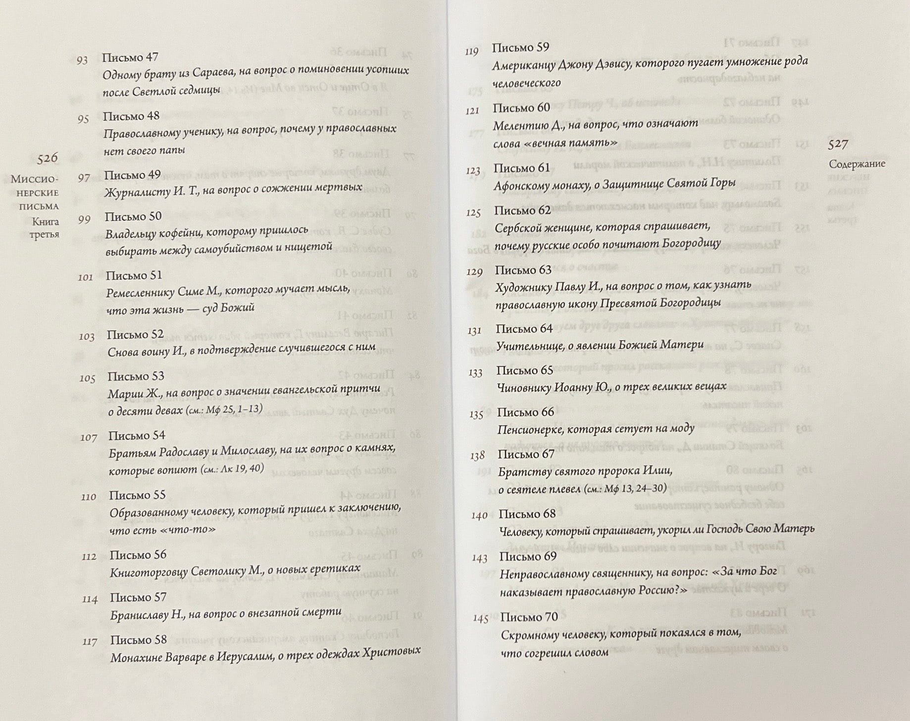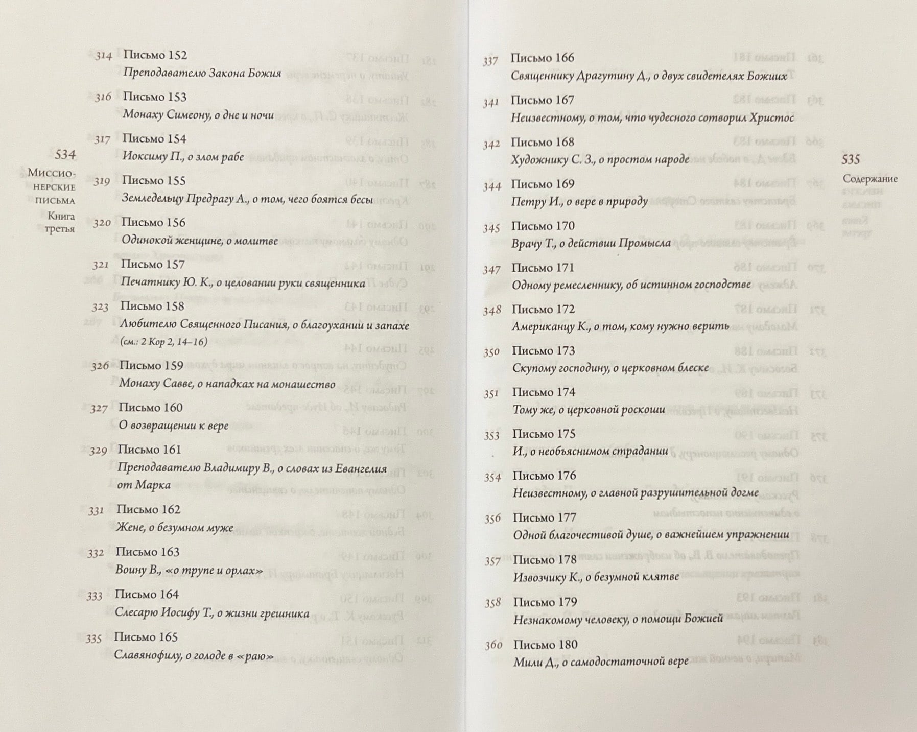 The first and second books of the collection include St. Nicholas of Serbia's talks on Sunday Gospel readings, given by him in different years. The third book of the collection includes "Missionary Letters" - the saint's answers to various questions from the laity.