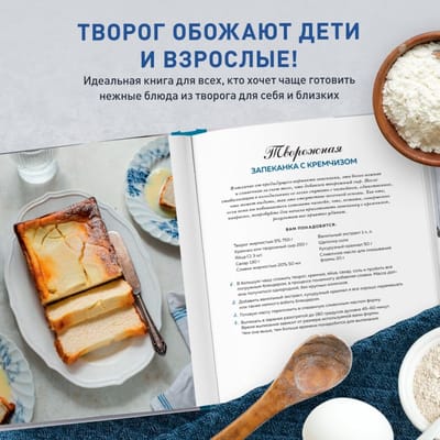 What could be more delicious than cottage cheese casserole for breakfast, to the aroma of which you woke up in childhood? Or appetizing cheesecakes and pancakes made of homemade cottage cheese that your grandmother used to make for you in the village? Now you can prepare all these dishes that remind you of your carefree childhood thanks to the recipes of Ekaterina Sardanovskaya, the bestselling author of "Pumpkin Book. 40 original recipes for breakfast, lunch and dinner" and "Tasty like mom's. Good Girl Recipes." The book contains detailed step-by-step recipes for your favorite cottage cheese dishes that your family is sure to love - you will learn how to cook homemade cottage cheese, unusual tarts, riccotti, bagels, cotton cakes, muffins, doughnuts and even cakes, rolls and cheesecakes from cottage cheese, which are sure to become the main course for any holiday!