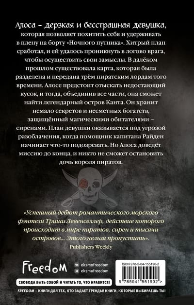 Alosa is a daring and fearless girl who allows herself to be kidnapped and held captive aboard the Night Traveler. Her cunning plan succeeds, and she manages to infiltrate her enemy's lair to carry out her plans. In the distant past, there existed a map that was divided and given to three pirate lords of the time. Alosa must find the missing piece, and then, by combining all the pieces, she will discover the legendary island of Kanta. It holds many secrets and untold riches, protected by magical inhabitants—the Sirens. Her plan is threatened when Captain Raiden, her mate, begins to suspect something. But Alosa will see her mission through, and no one can stop the daughter of the pirate king.