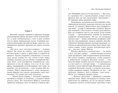 As a true nobleman, Miles Vorkosigan is obligated to serve his sovereign by pursuing a military career, but... fails the Academy entrance exams. Unfazed, he and his girlfriend head to Beta Colony to visit Granny Naismith, but get caught up in a showdown with arms dealers and, as a result, find themselves embroiled in a local war.