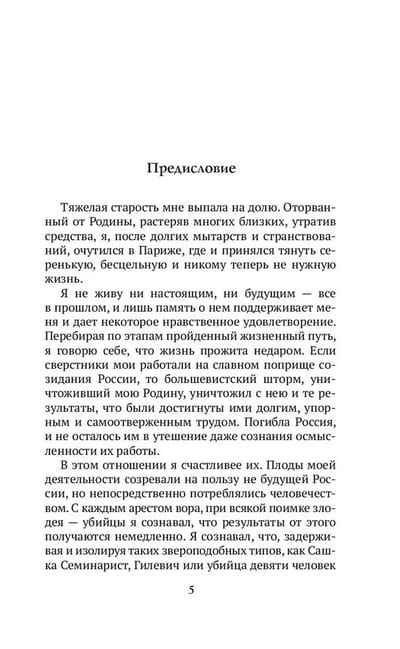 Essays on the criminal world of the final years of the Russian Empire, written by the head of the Moscow detective police, the outstanding criminologist and detective Arkady Koshko, are still read with unflagging interest today. The "Russian Sherlock Holmes" possessed not only a talent for detective work but also an exceptional writing talent. With passion and a healthy dose of humor, Koshko recounts police tricks, surveillance and disguise techniques, the latest advances in forensic science, and crime-solving techniques, captivating readers with his vibrant Russian language and the dedication of an old veteran to protecting citizens. His short stories about mysterious incidents, dangerous villains, colorful rogues, and, of course, brave detectives captivate more than just fans of crime fiction. In each case, the detective sought to unravel the circumstances that lead to the crimes, making his essays also a profound exploration of human nature.