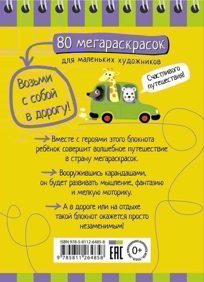 Opening this notebook will transport your child to a magical land of coloring pages. They can color the pictures in three ways: following a template, using specific colors, or creating their own. These activities will develop thinking, imagination, and fine motor skills. And on the road or on vacation, this notebook will be indispensable. Suitable for children ages 7 and up.